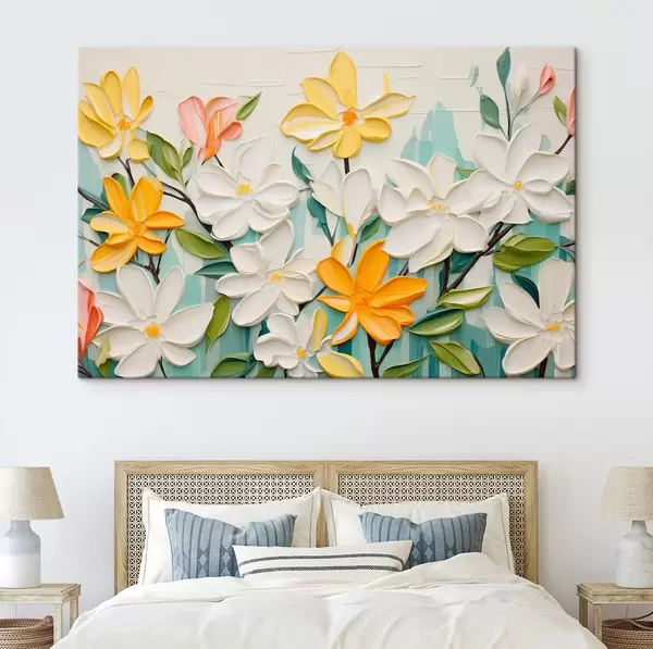 Pictură pe pânză Flori în relief în culori strălucitoare în stil de imitație brushstroke Nr s44942