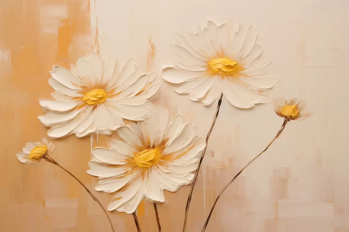 Tablouri Flori abstracte pe un fundal portocaliu în stil pictură în ulei s44945