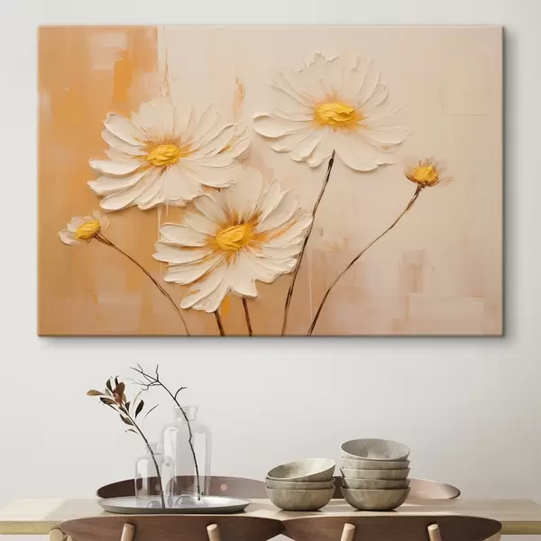 Pictură pe pânză Flori abstracte pe un fundal portocaliu în stil pictură în ulei Nr s44945