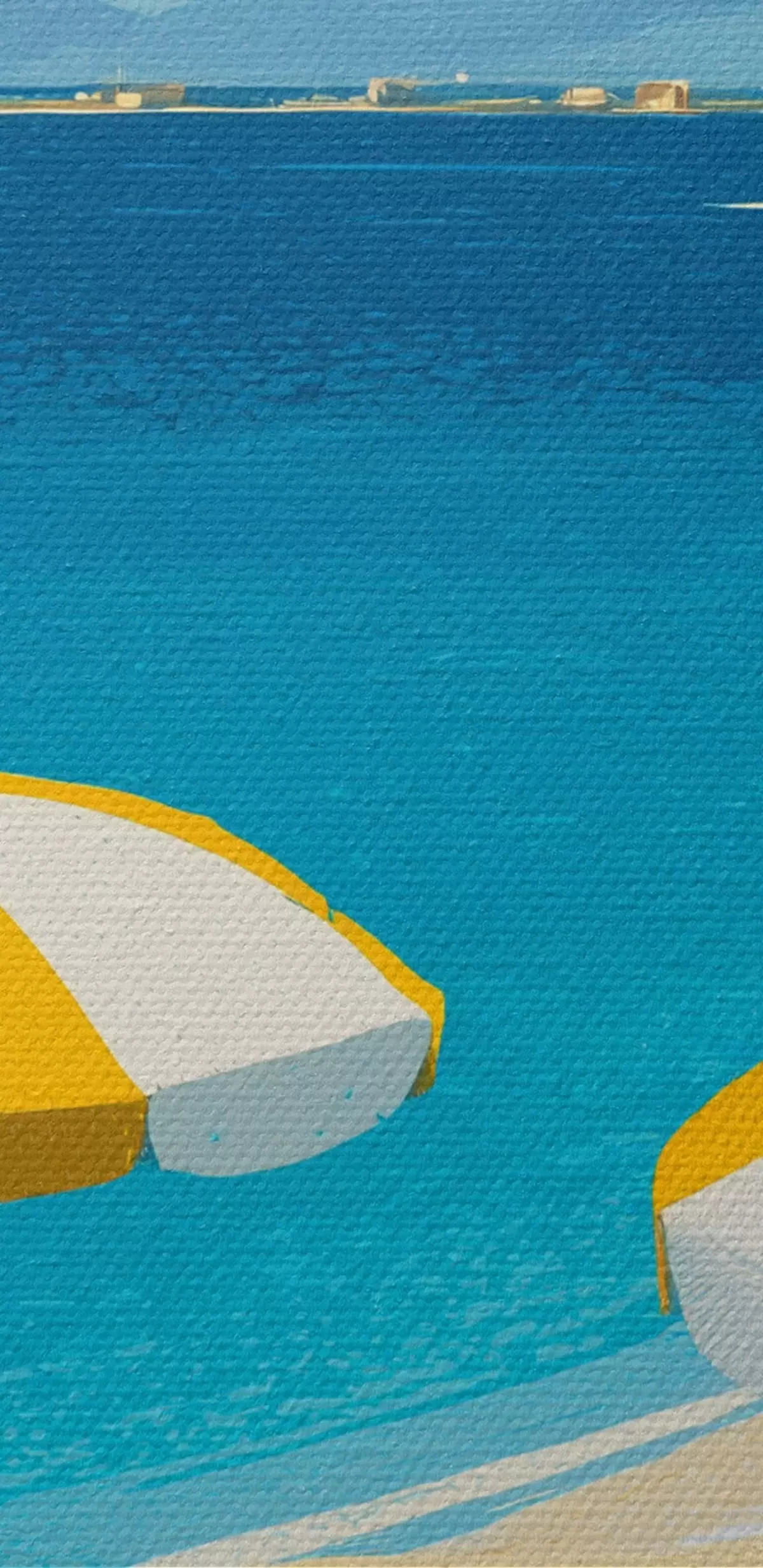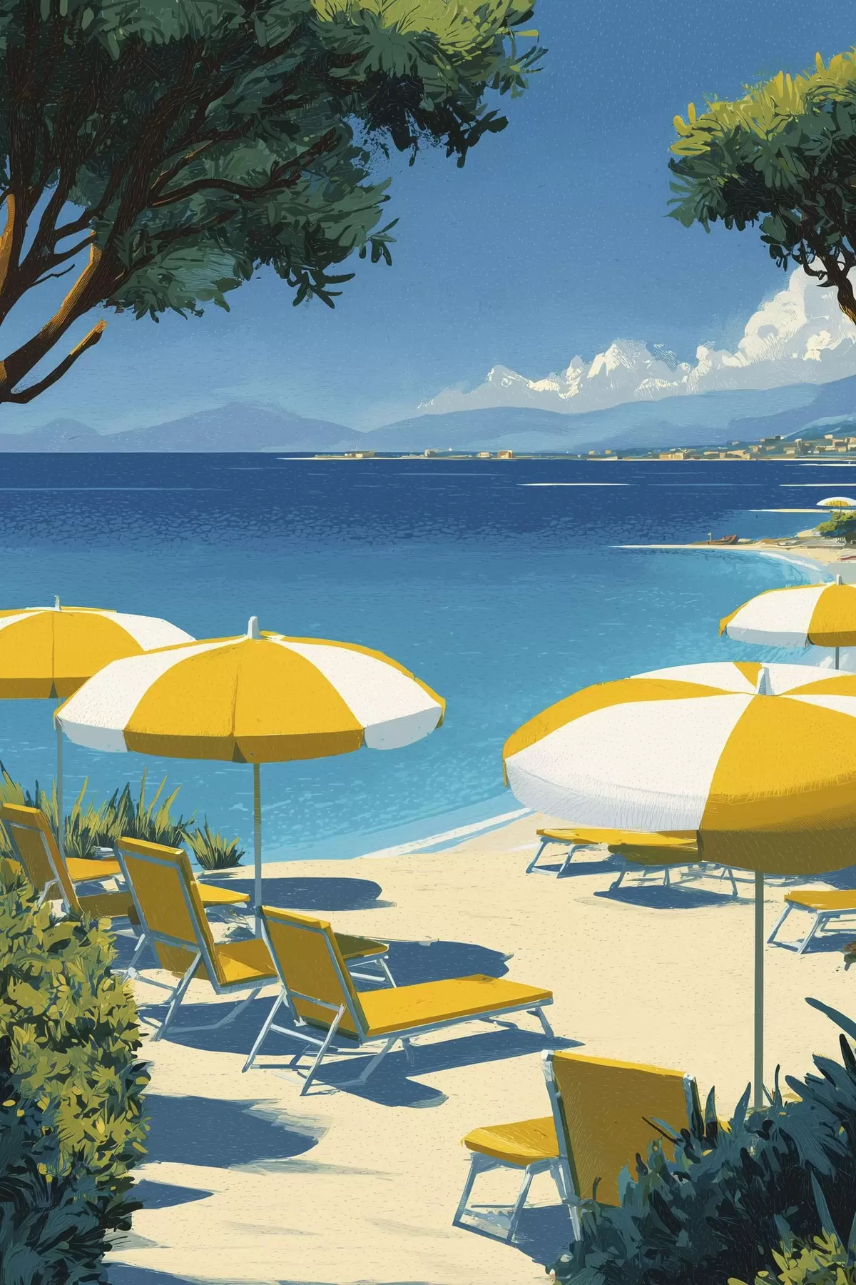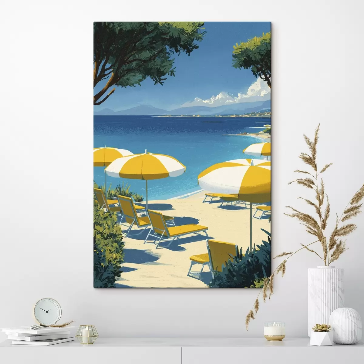 Pictură pe pânză Plajă de vară cu umbrele și copaci Nr s44974
