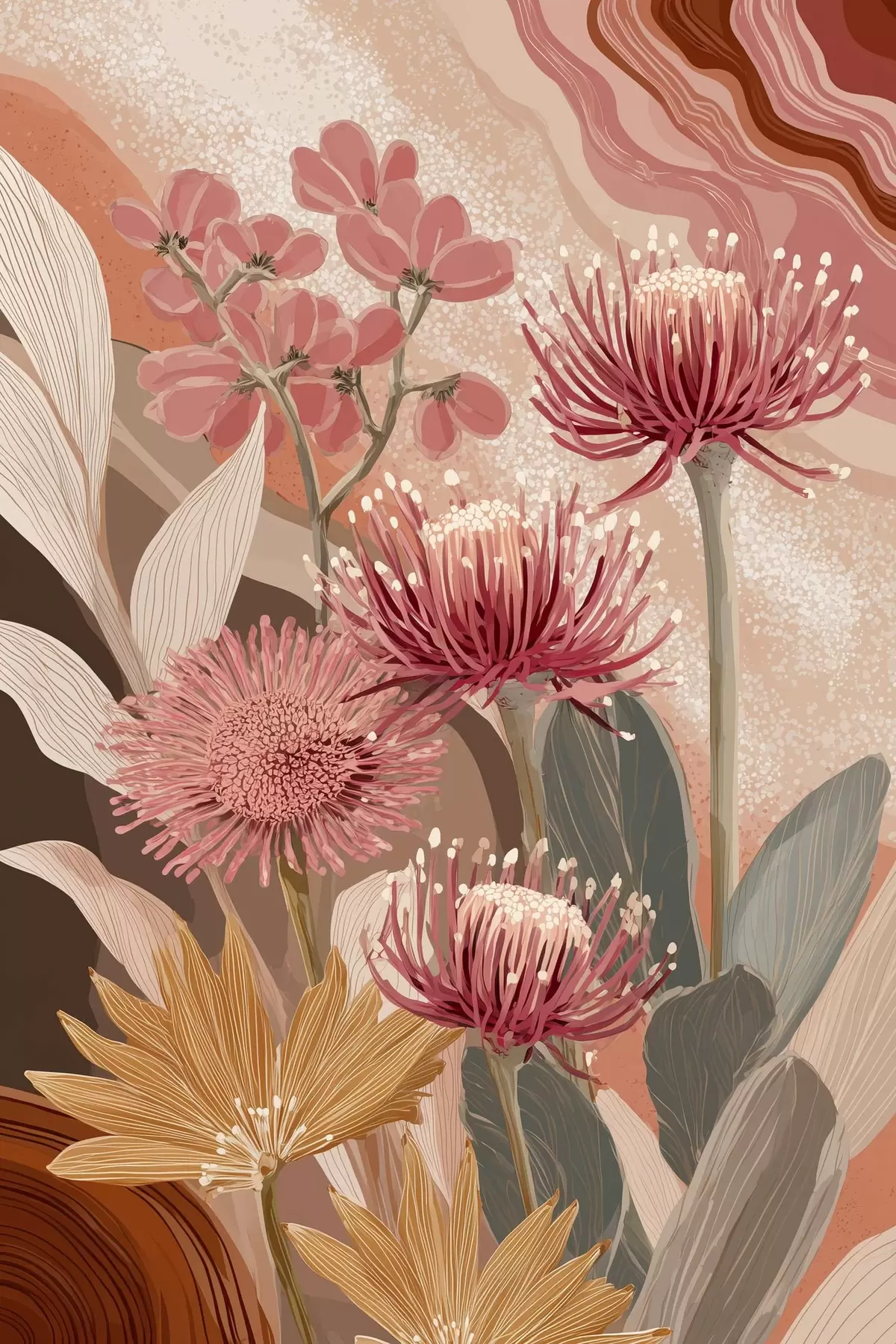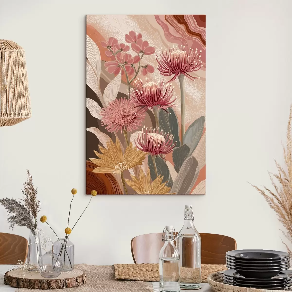 Pictură pe pânză Flori frumoase, desen în stil ulei, culori roșu și roz Nr s44975