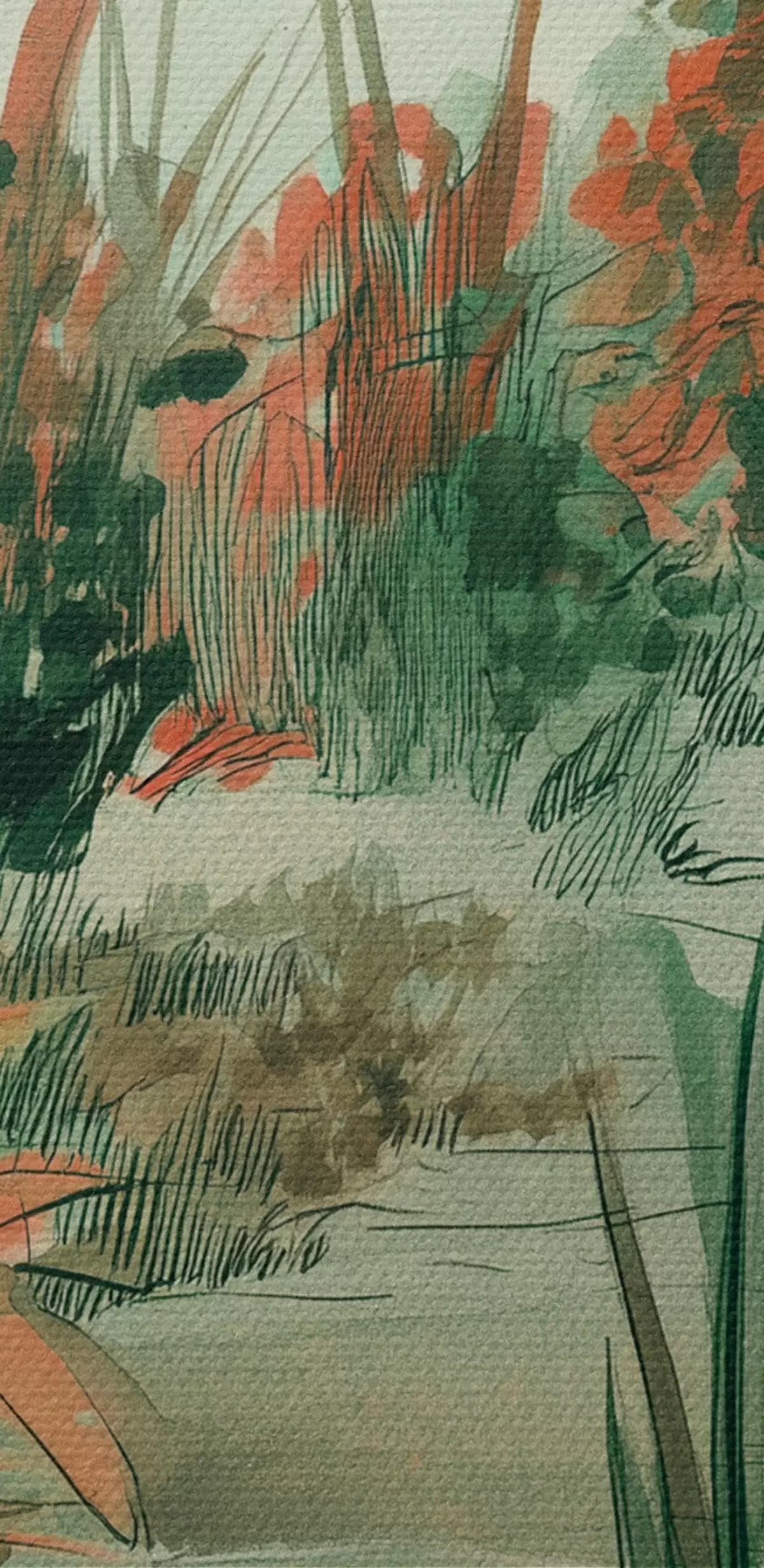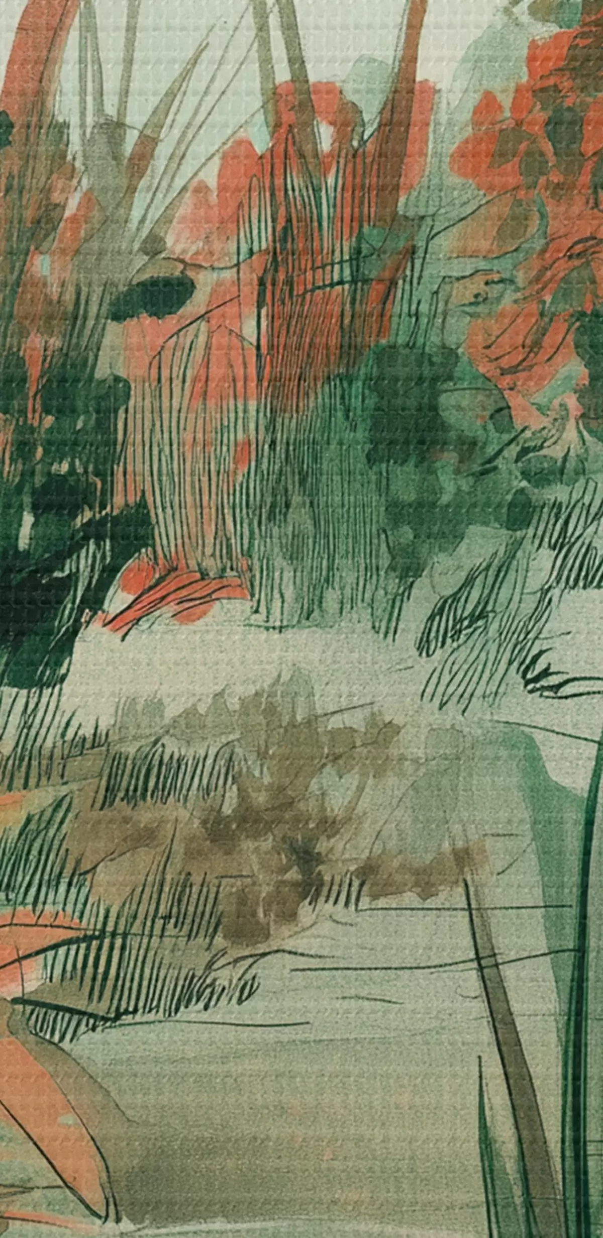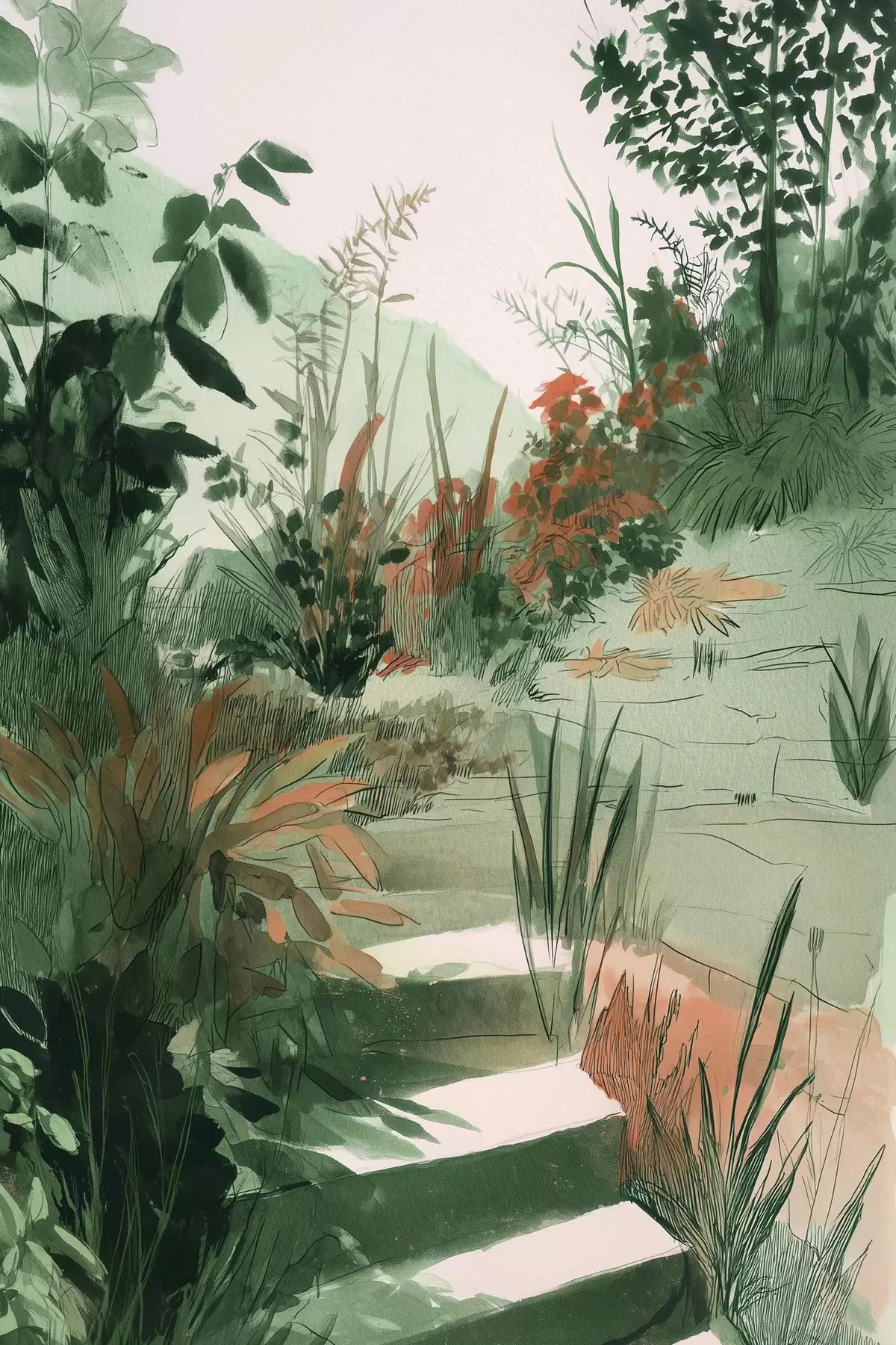 Tablouri Grădină orientală cu tufișuri și copaci, culori verzi s44982