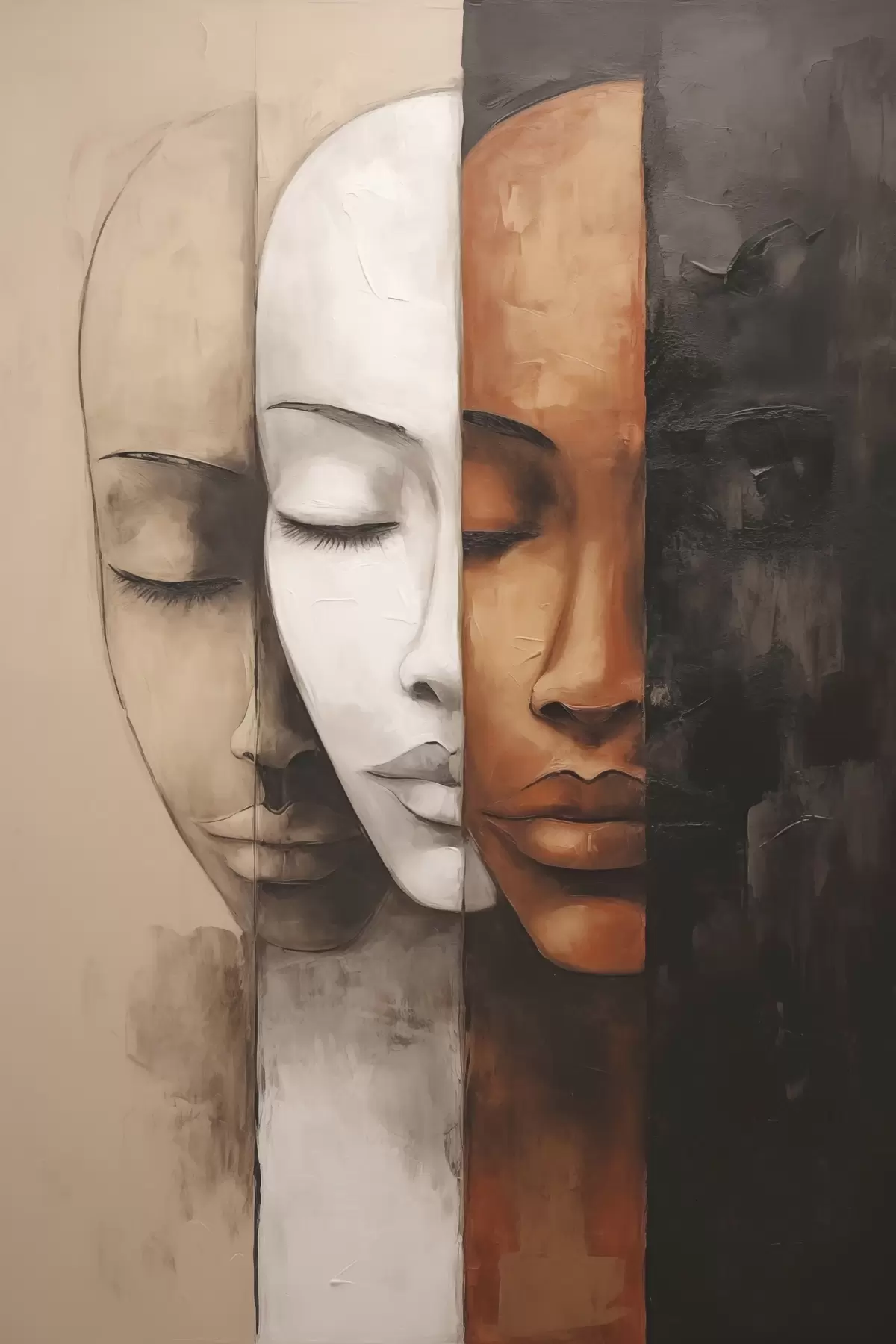 Pictură pe pânză Portret în stil abstract cu fețe Nr s45003