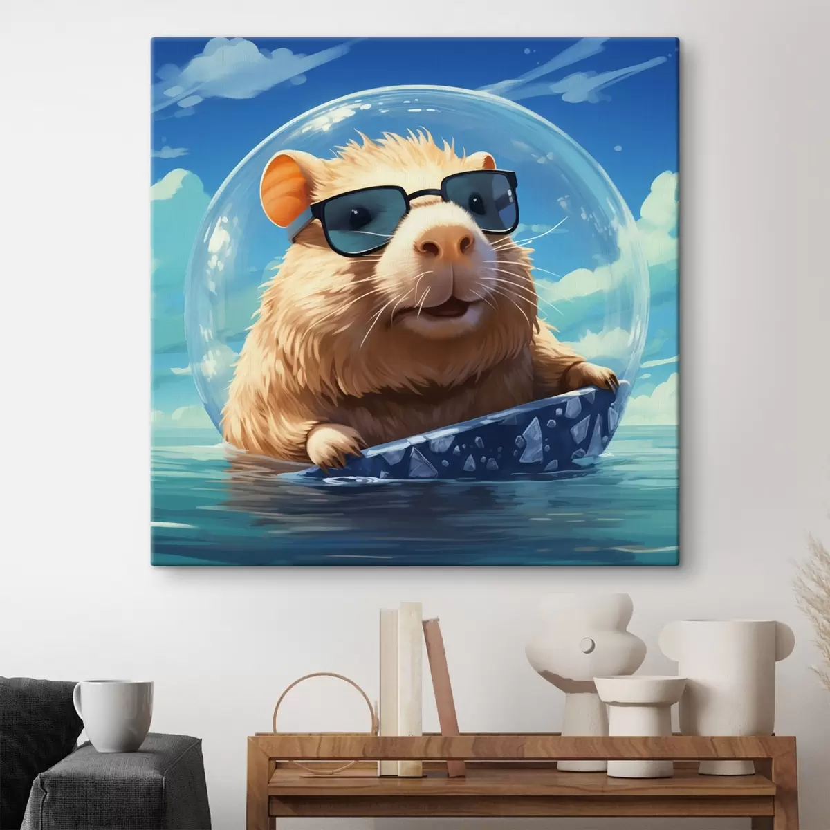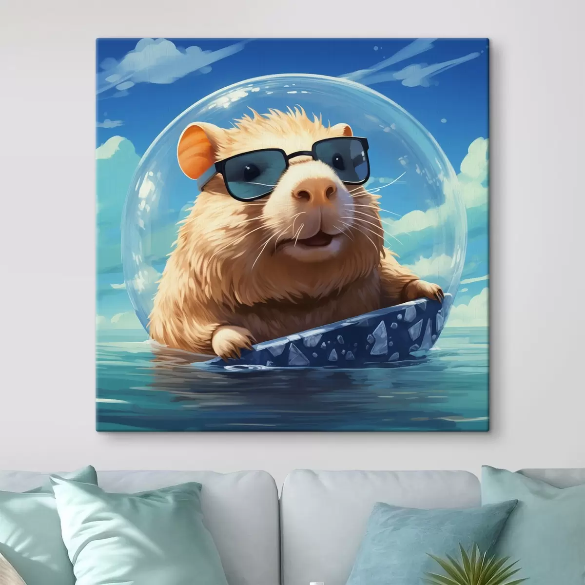 Pictură pe pânză Capybara veselă într-un balon transparent pe apă Nr s45029