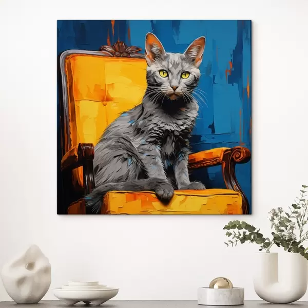 Tablouri Portret artistic de pisică pe un fundal albastru s45030