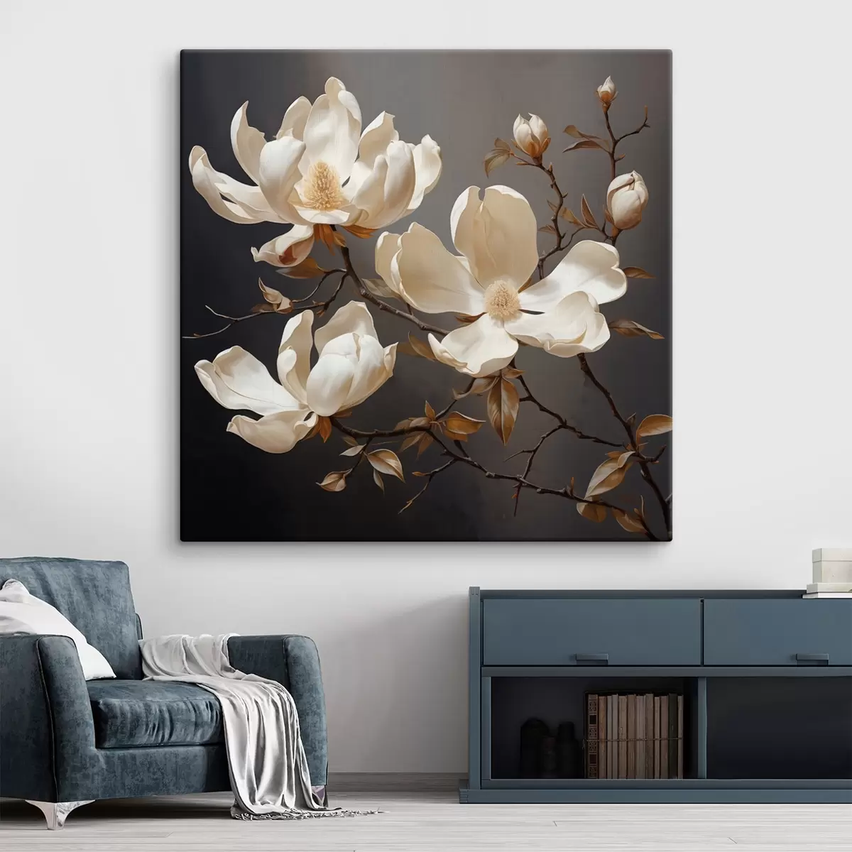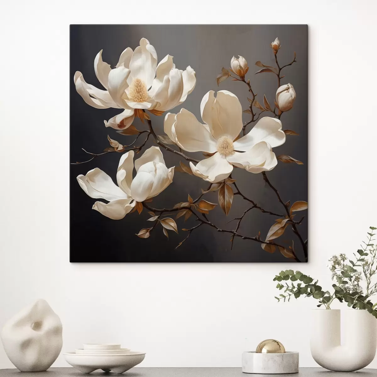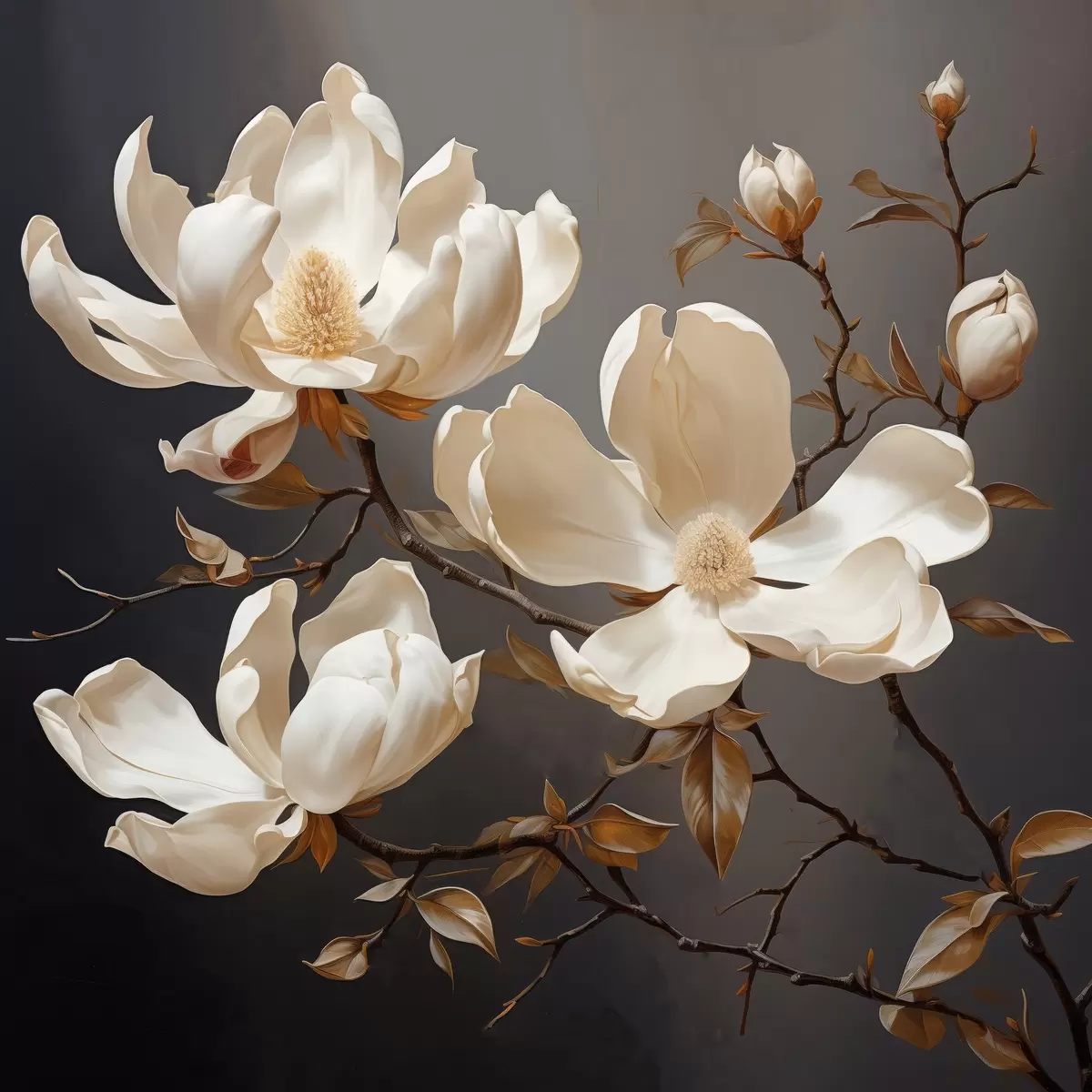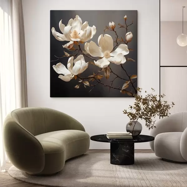 Tablouri Magnolii albe pe un fundal întunecat în stil pictural s45038