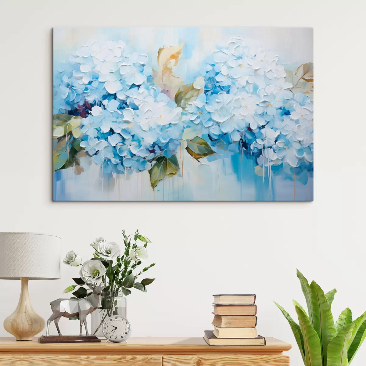 Pictură pe pânză Hortensii pastelate în tehnica picturii volumetrice Nr s45052