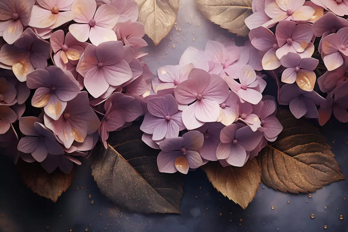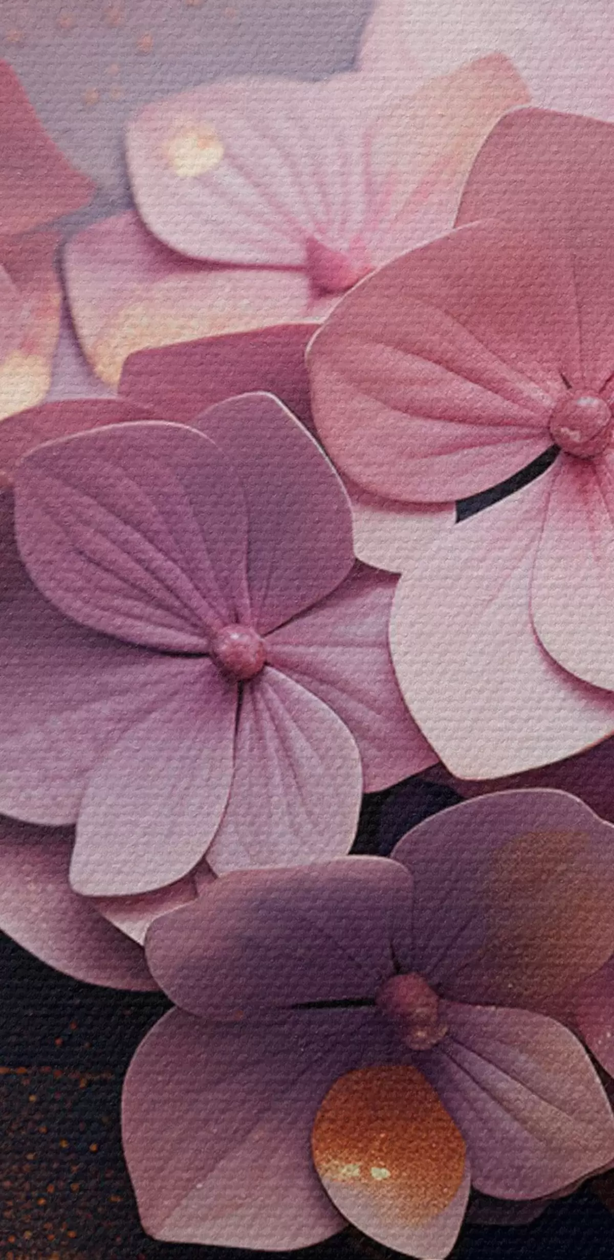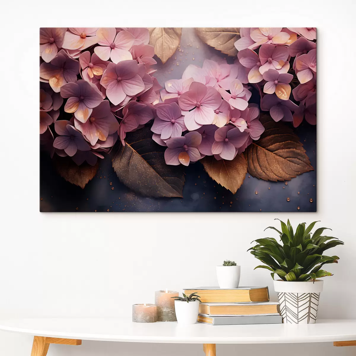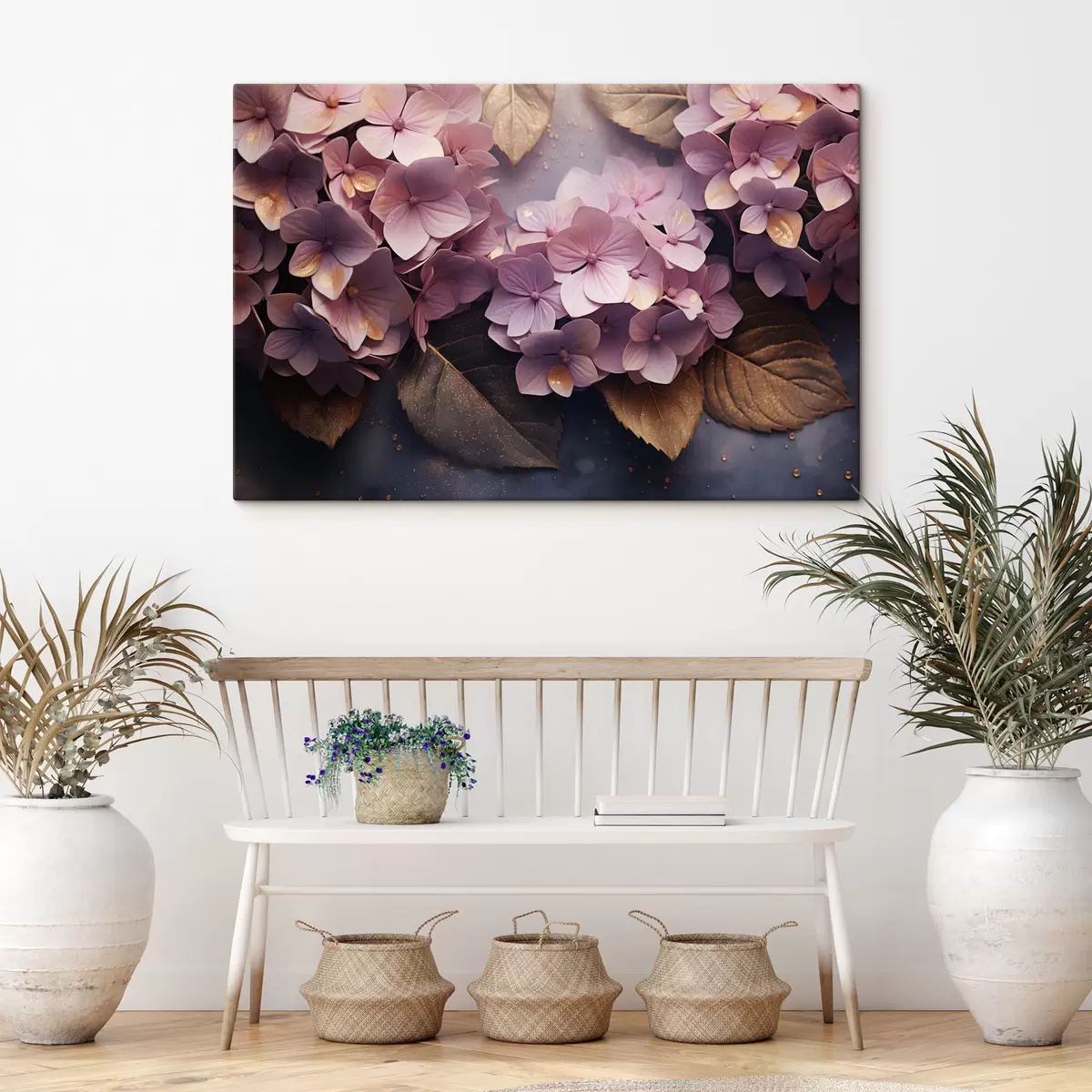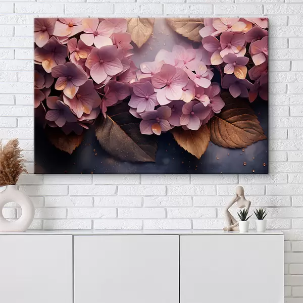 Tablouri Hortensii roz luxuriante pe un fundal întunecat în stil pictural s45054