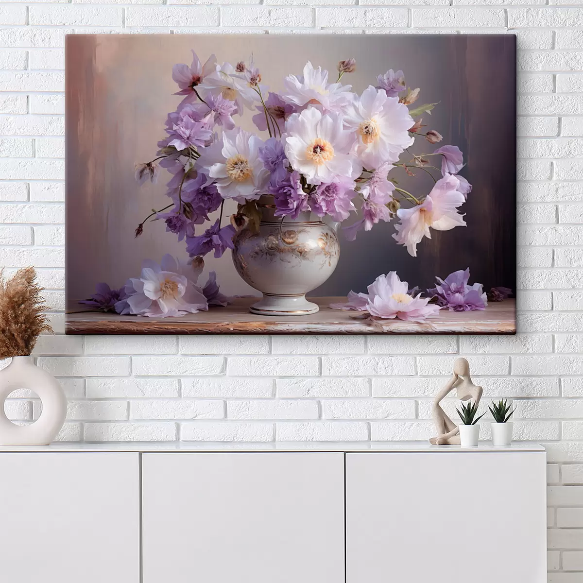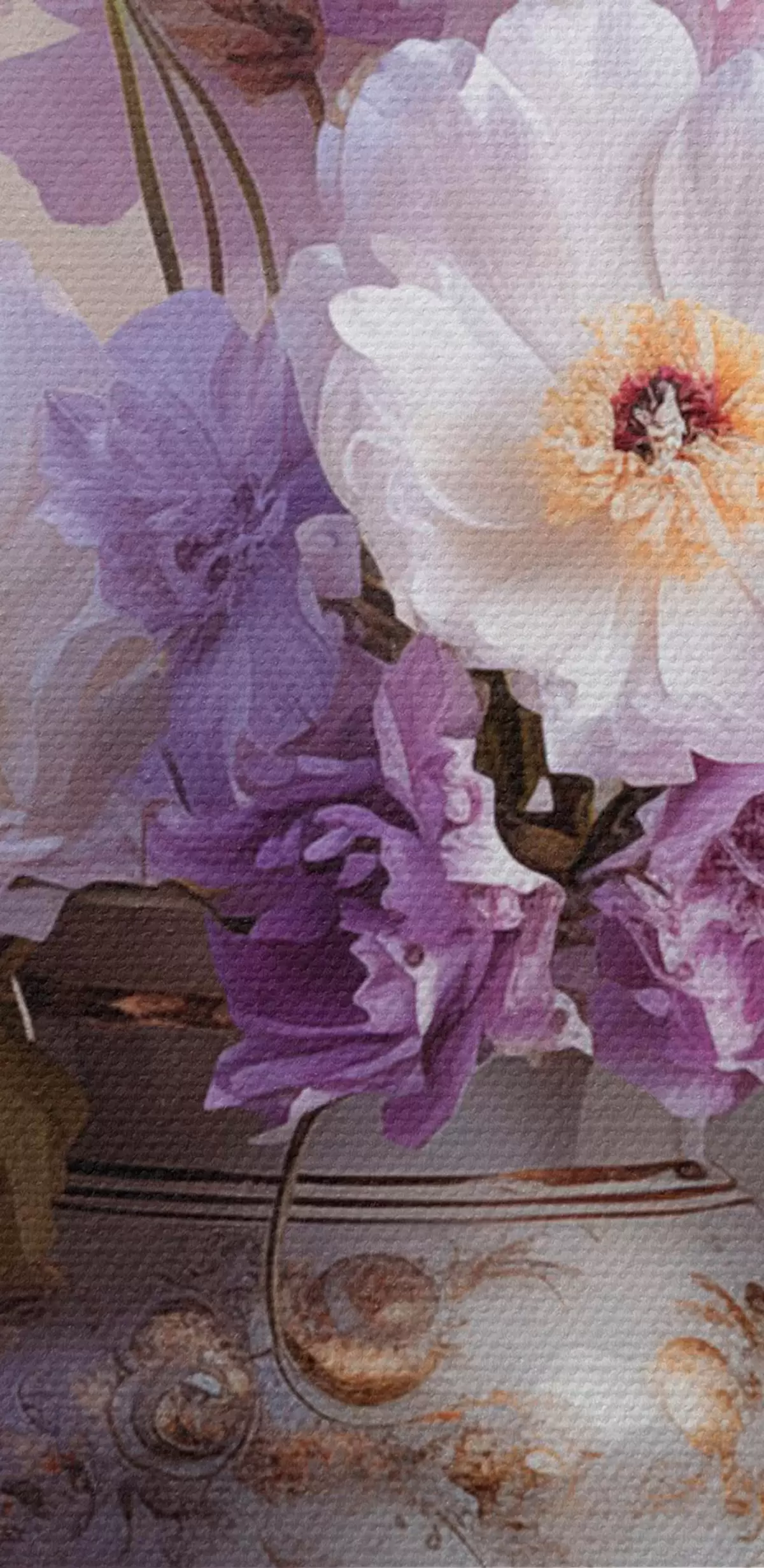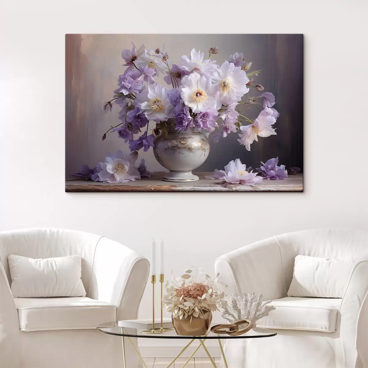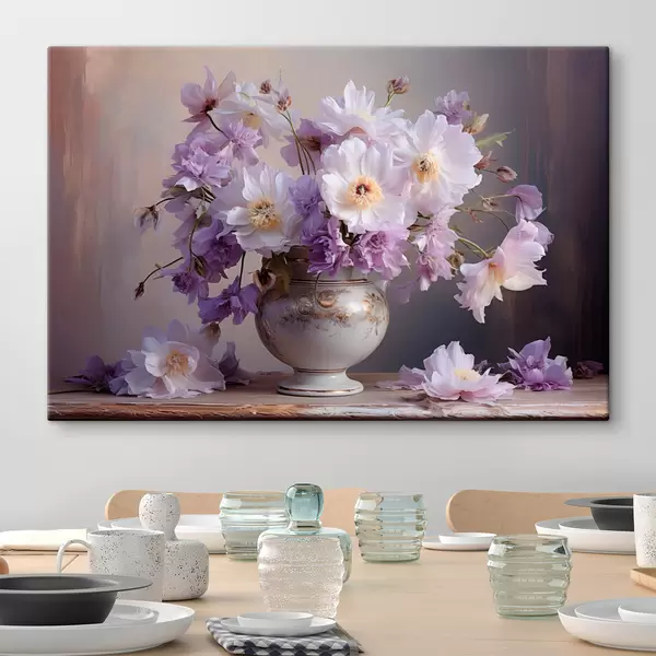 Pictură pe pânză Natură statică florală: flori albe și violet în stil artistic Nr s45058