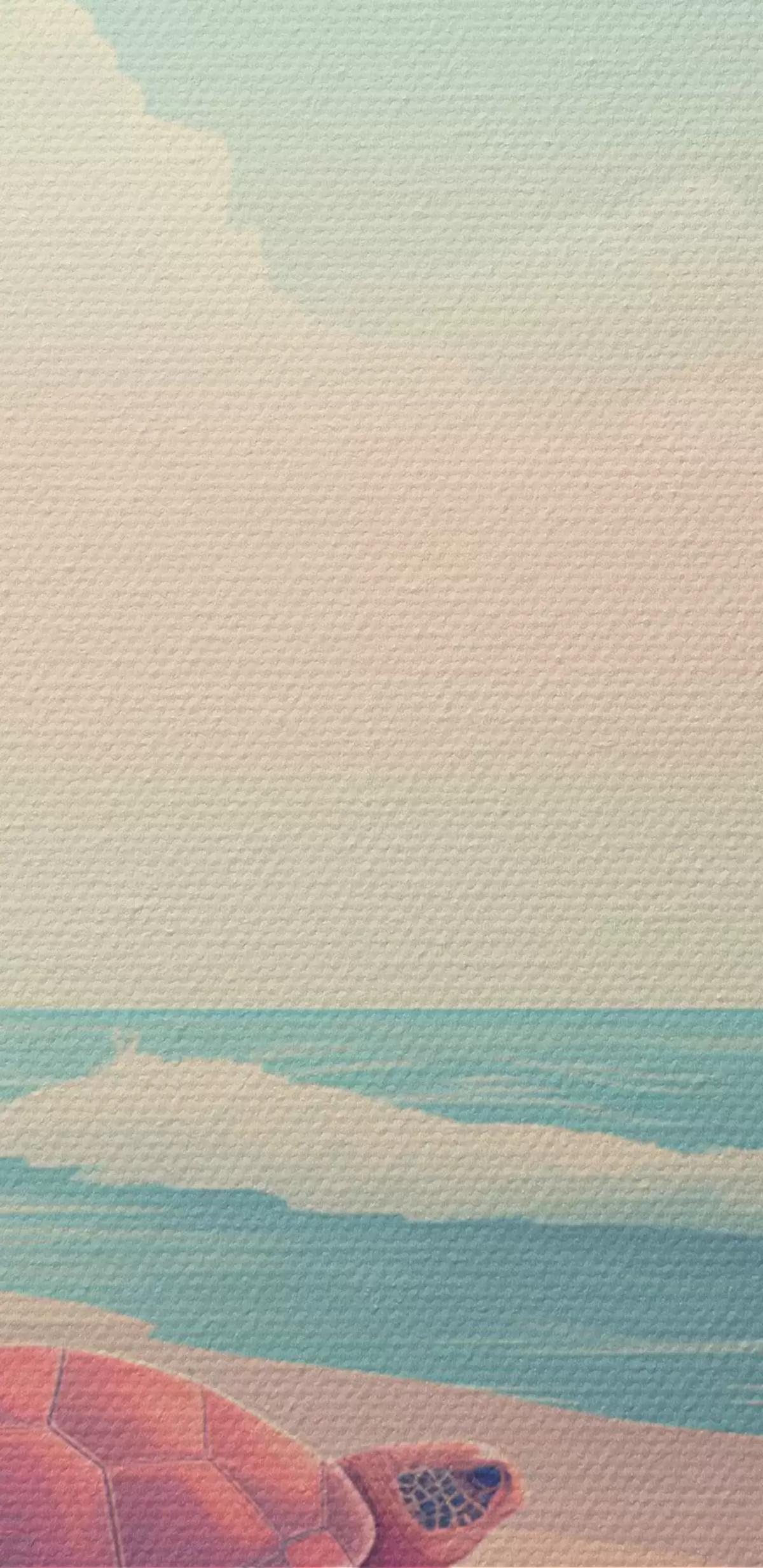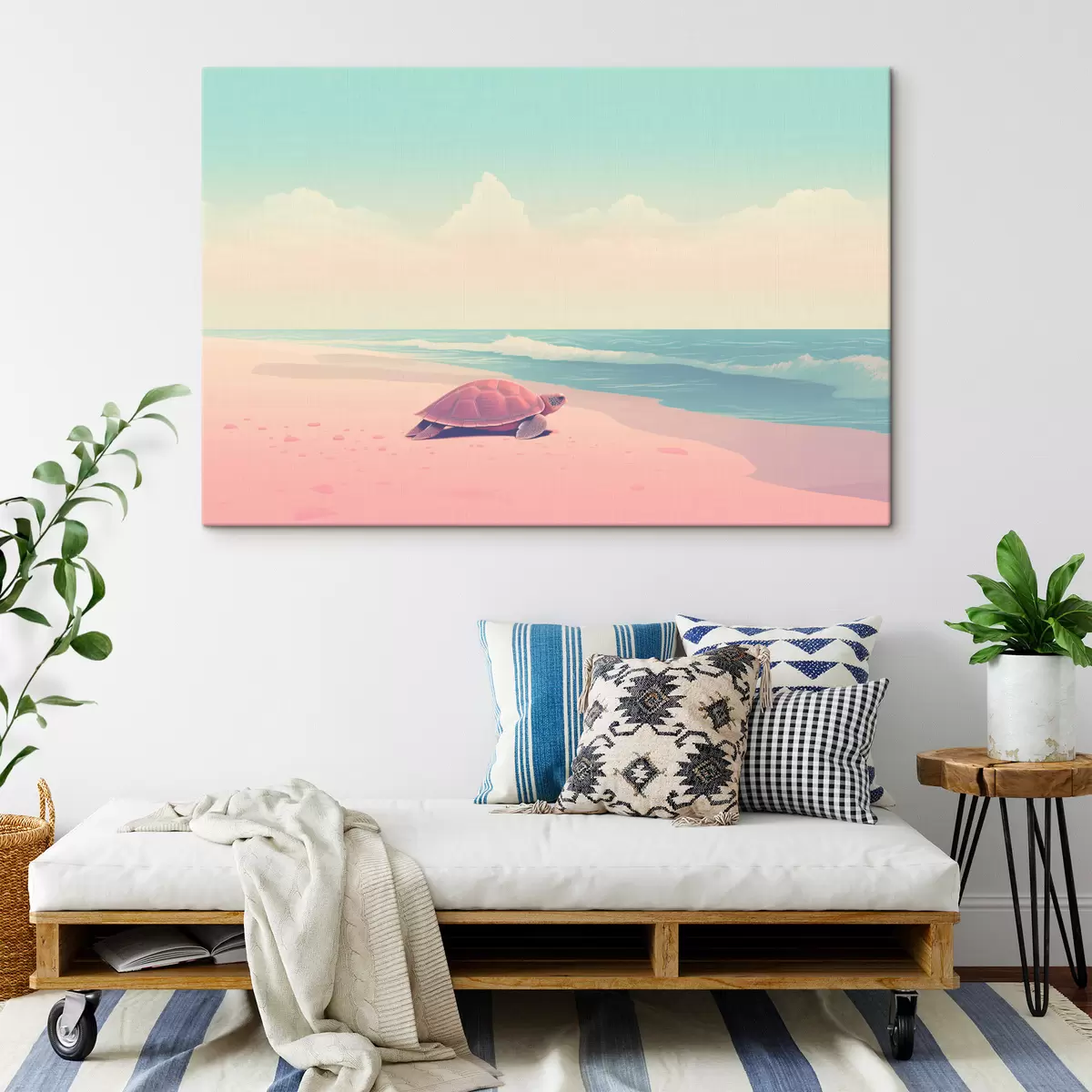 Pictură pe pânză Țestoasă de mare pe o plajă roz: peisaj minimalist Nr s45059