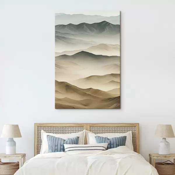 Pictură pe pânză munți, straturi, ceață, gradient moale, natural, bej, abstract, peisaj Nr s45095