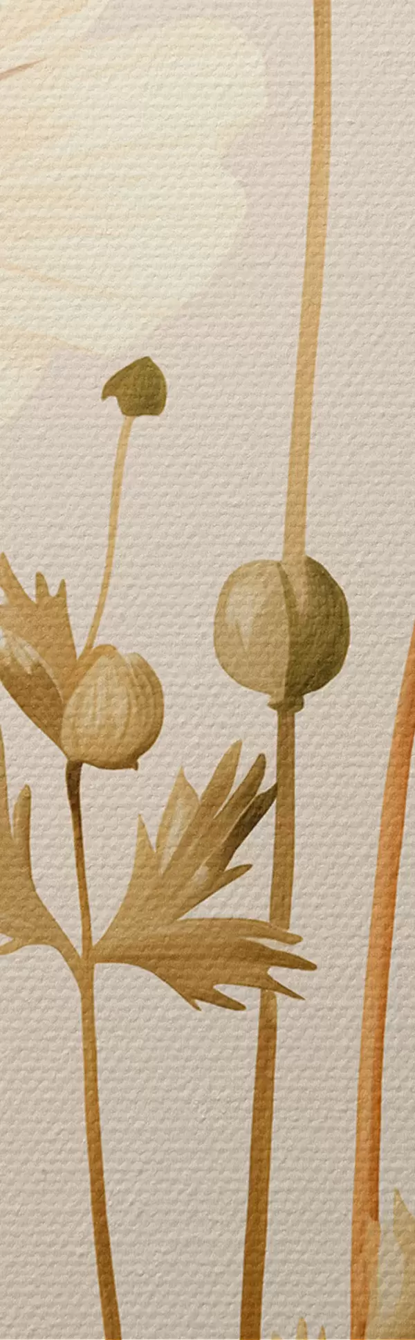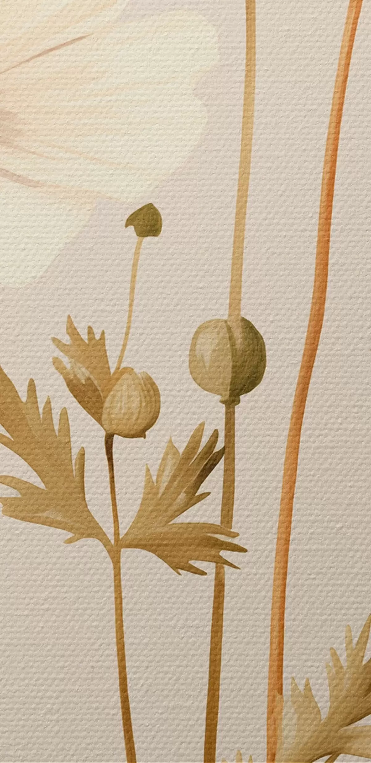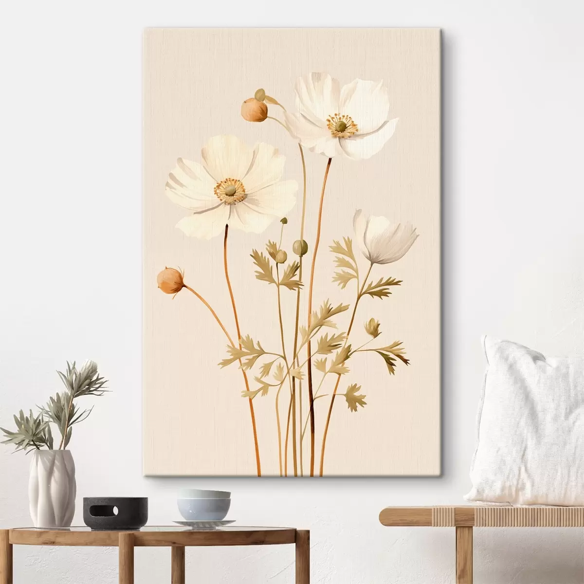 Pictură pe pânză floare, botanic, fundal bej, tonuri moi, petale, plante, vintage, minimal Nr s45099