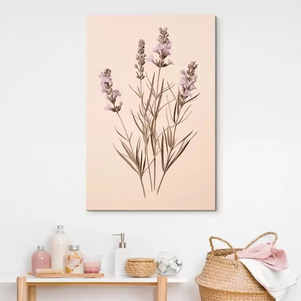 Pictură pe pânză lavanda, botanic, fundal bej, violet moale, frunze, floral, natural, tulpină Nr s45100