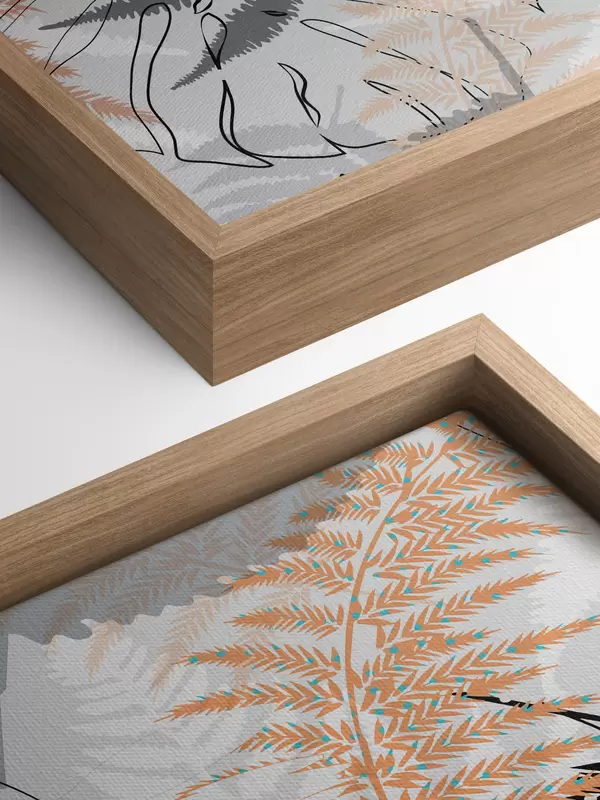 Tablouri ferigă, frunze abstracte, model, design plat, contrast, tonuri de gri, botanic, suprapunere s45101
