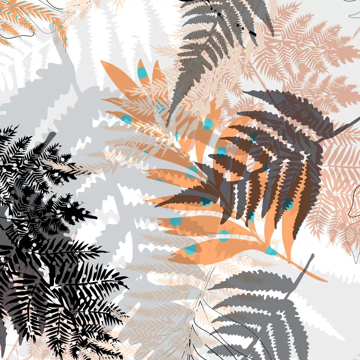 Pictură pe pânză frunze junglă, stil modern, line art, plante stratificate, culori stinse, natură Nr s45102