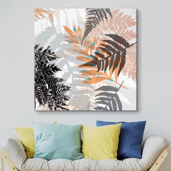 Pictură pe pânză frunze junglă, stil modern, line art, plante stratificate, culori stinse, natură Nr s45102