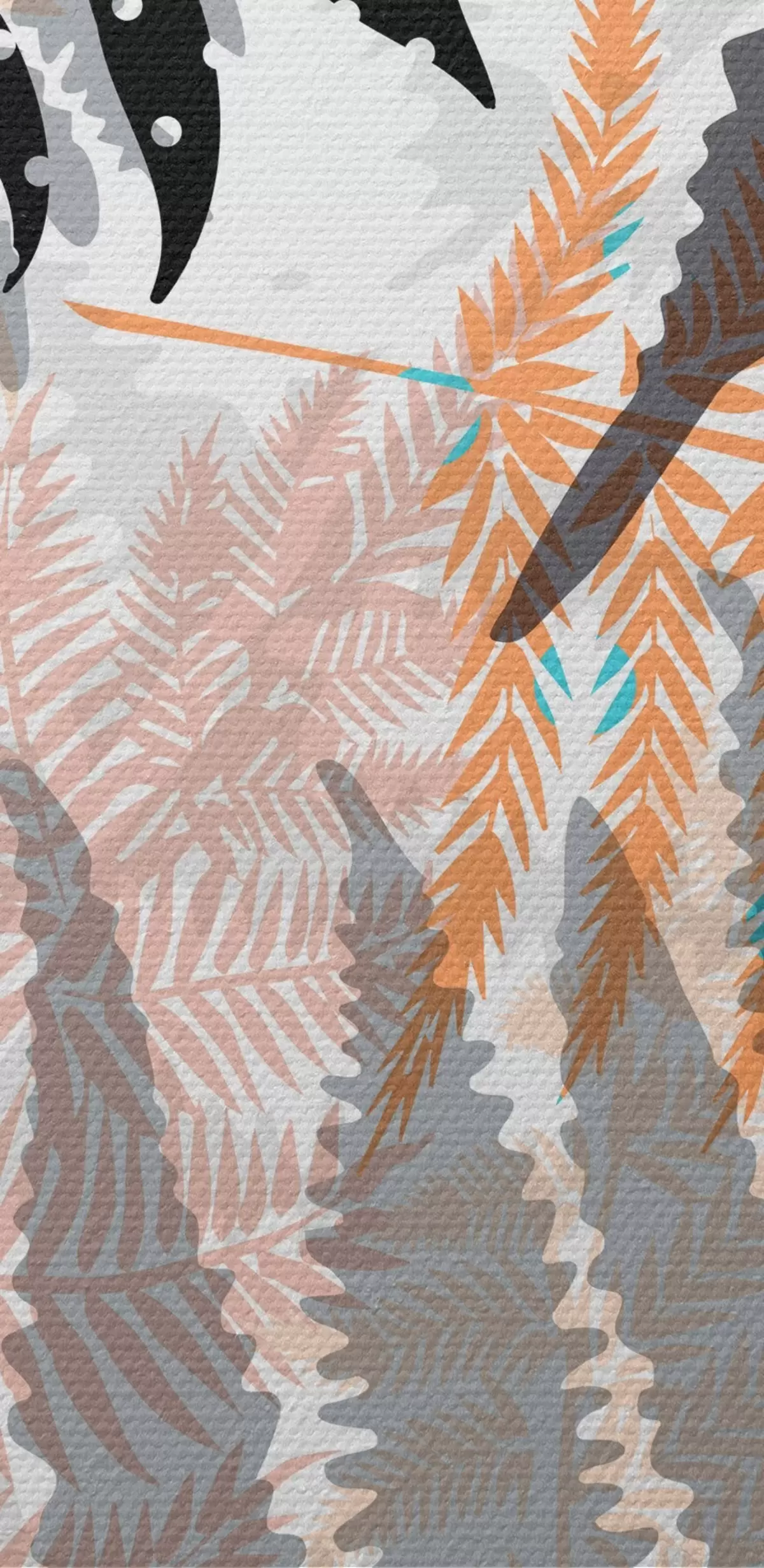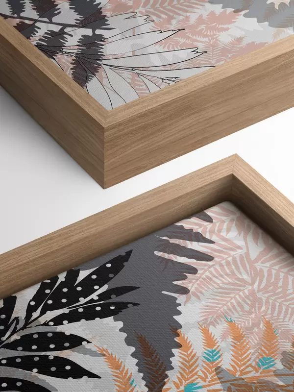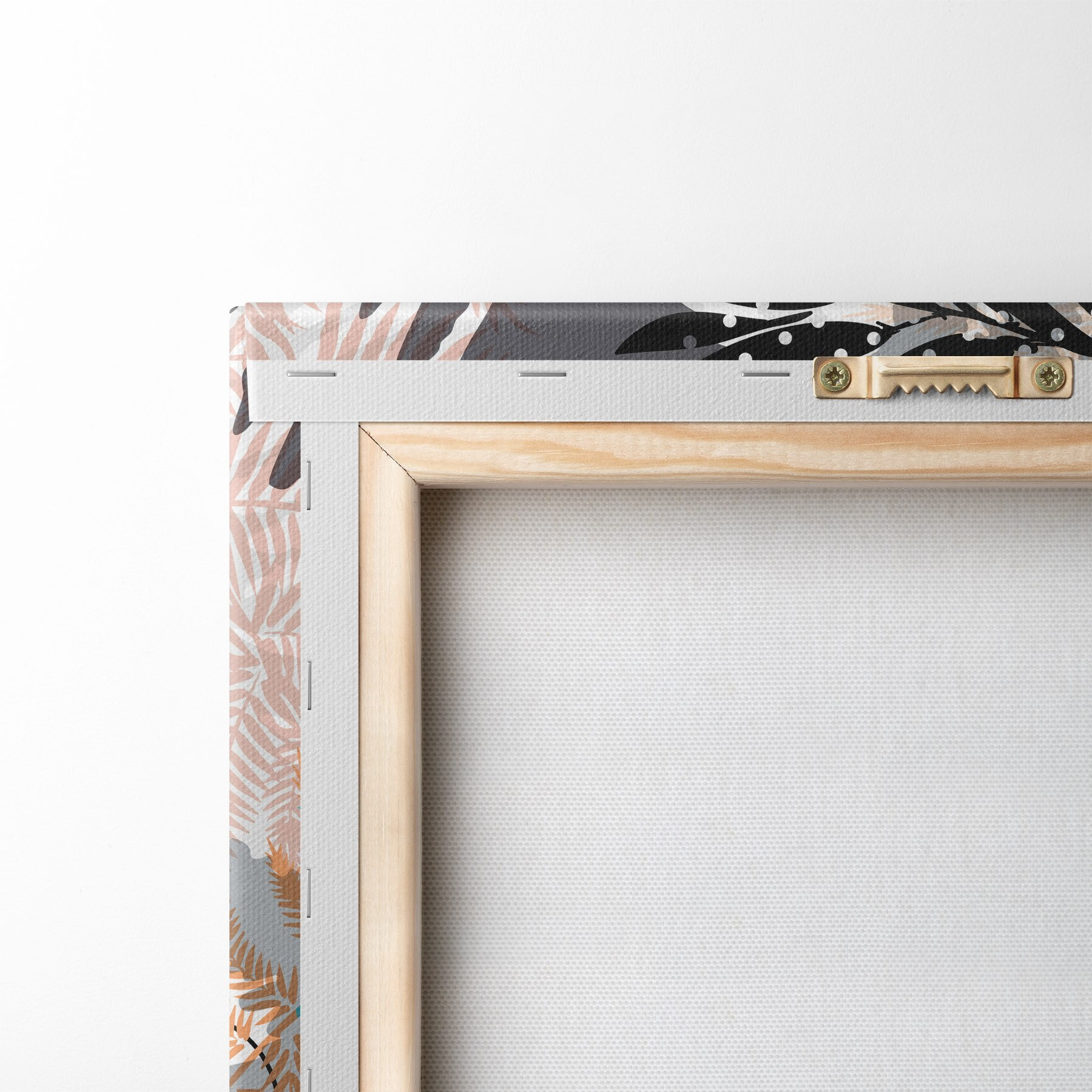 Tablouri frunze tropicale, grafic, textură, bej și negru, siluetă, contemporan, plantă s45103