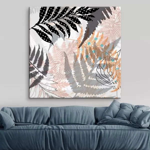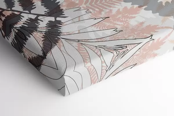 Pictură pe pânză frunze tropicale, grafic, textură, bej și negru, siluetă, contemporan, plantă Nr s45103