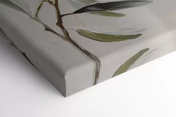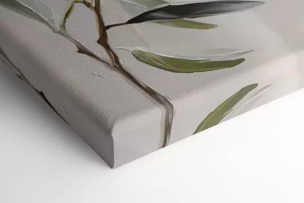Pictură pe pânză ramură de măslin, fruct verde, tonuri stinse, frunze, minimal, natural, pictură în ulei, botanică Nr s45109