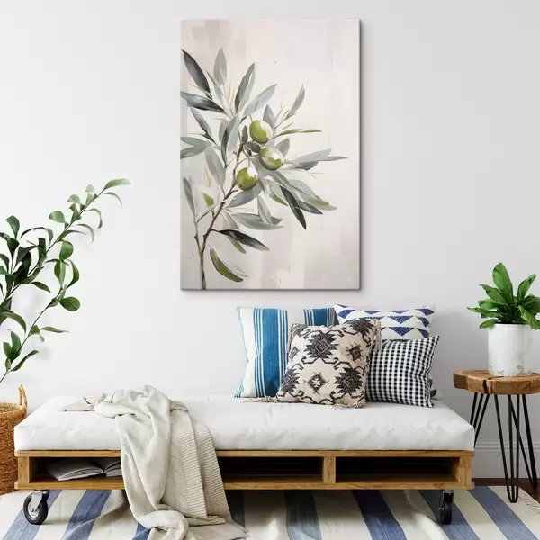 Tablouri ramură de măslin, fruct verde, tonuri stinse, frunze, minimal, natural, pictură în ulei, botanică s45109