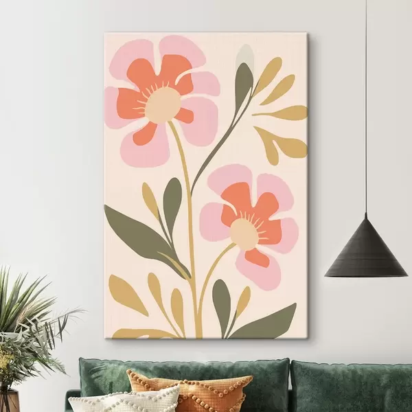 Tablouri Flori roz și portocalii stilizate cu frunze verzi s45140