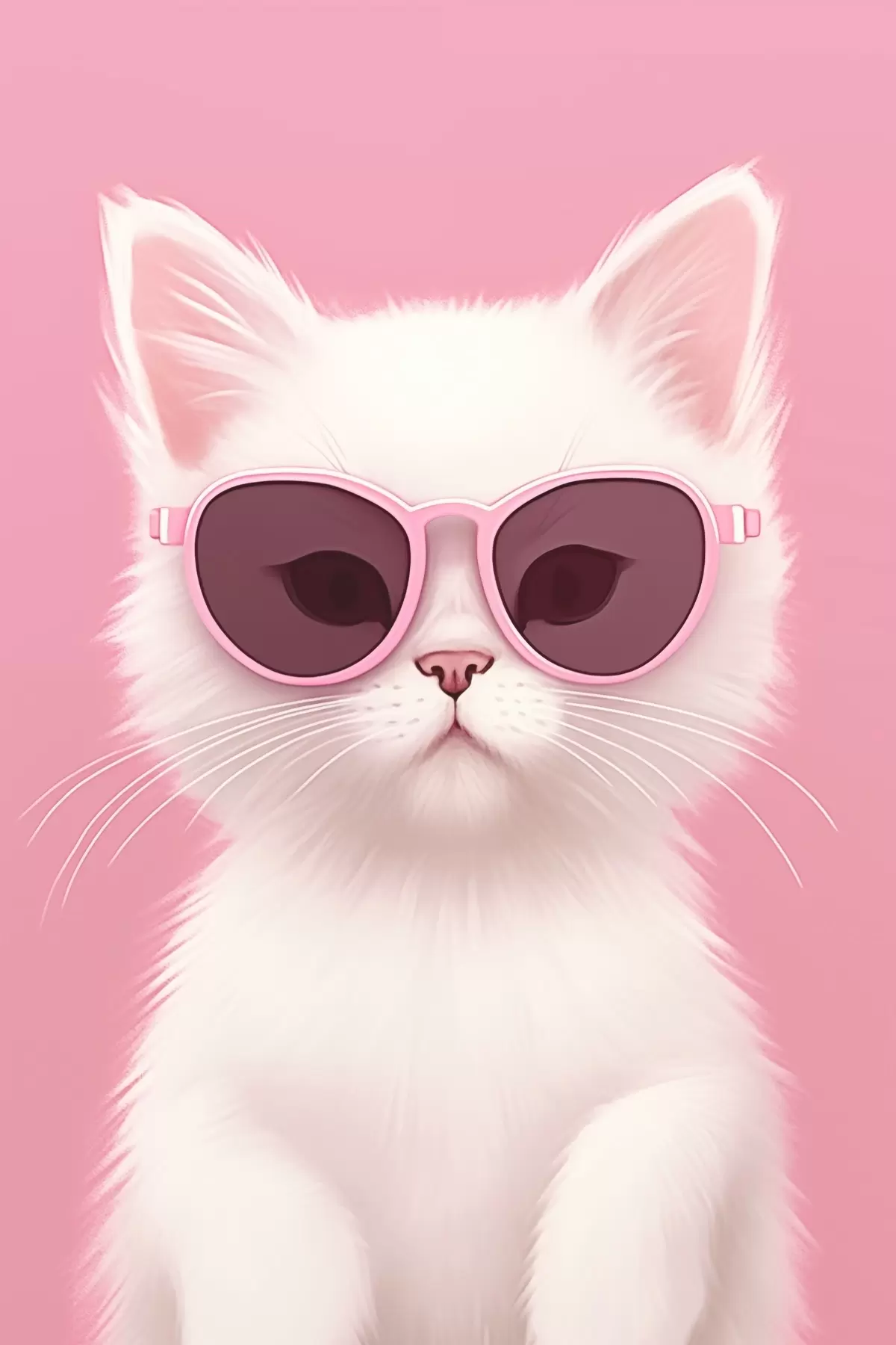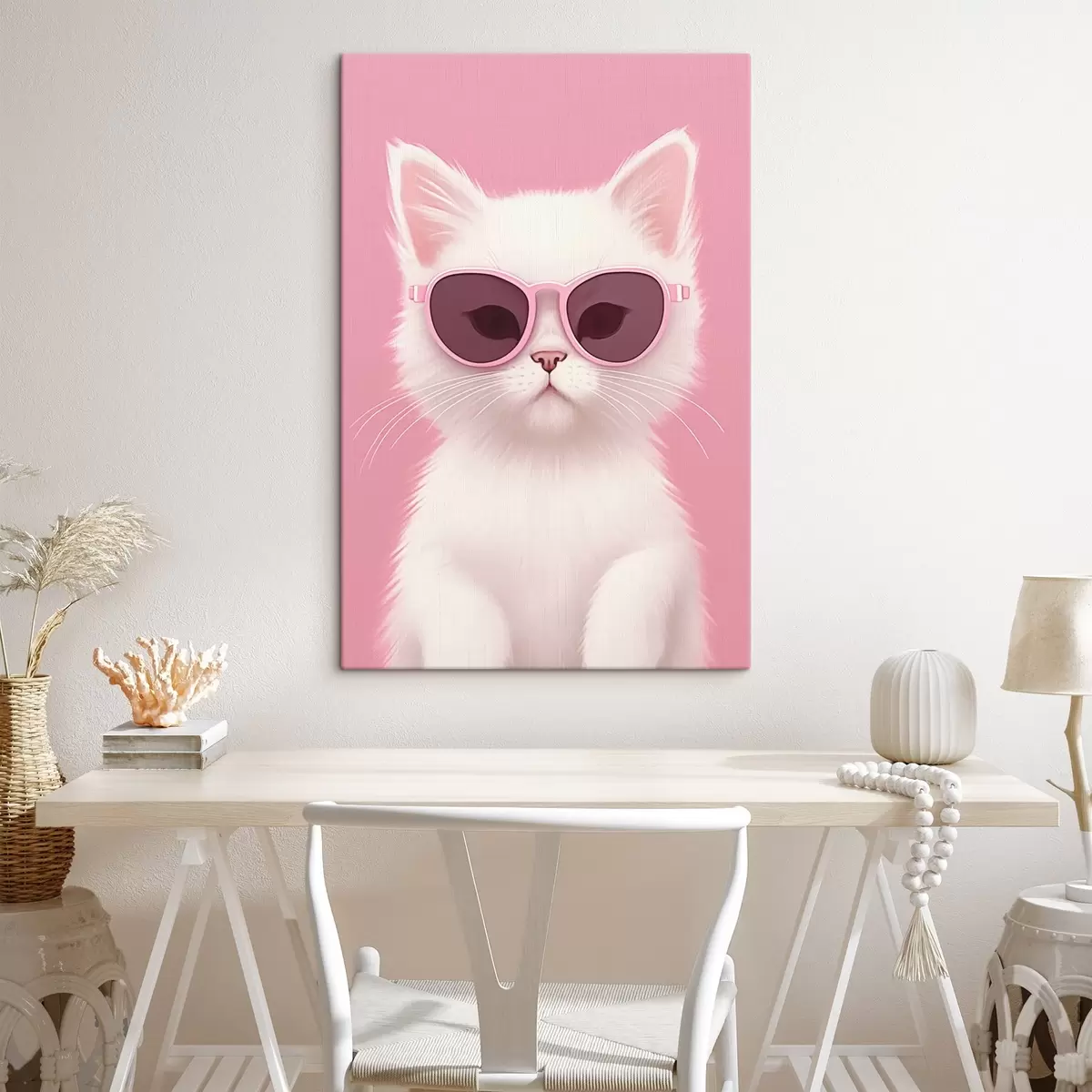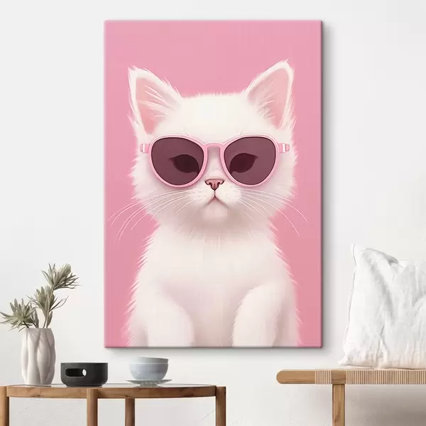 Pictură pe pânză Pisică albă în ochelari roz Nr s45145