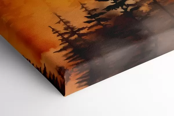 Pictură pe pânză O imitație de pictură peisaj acuarelă a unei păduri cu pini înalți și munți în fundal Nr s45170