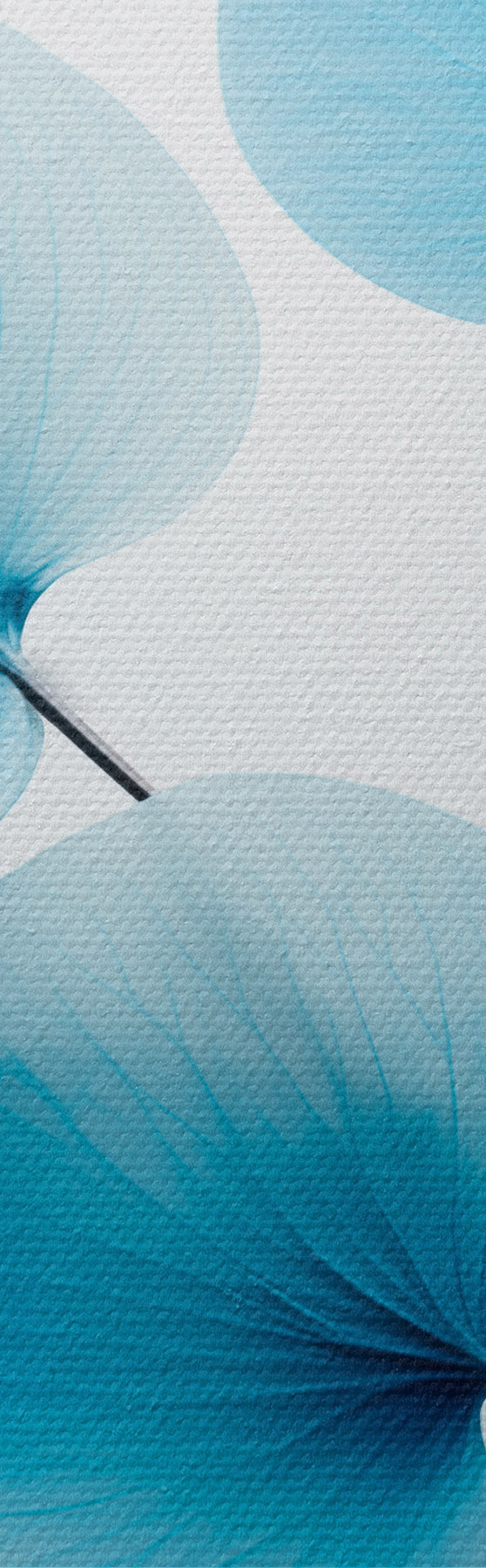 Pictură pe pânză Creangă cu frunze albastre translucide, vene delicate vizibile, compoziție ușoară și calmă, estetică minimalistă Nr s45176