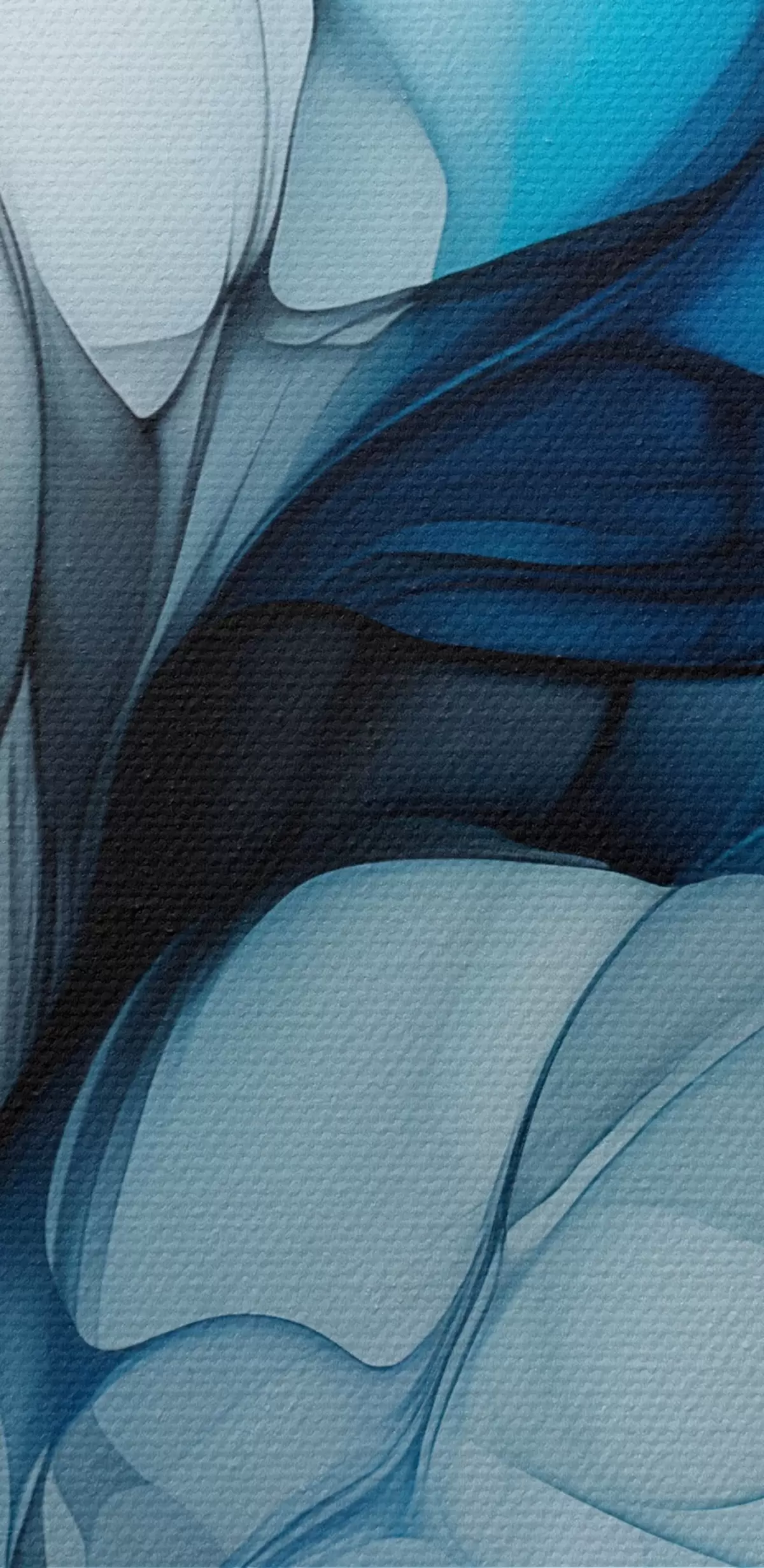 Tablouri Compoziție abstractă cu linii fluide și petale translucide în nuanțe de albastru, alb și bej, imitație de cerneală alcoolică s45178