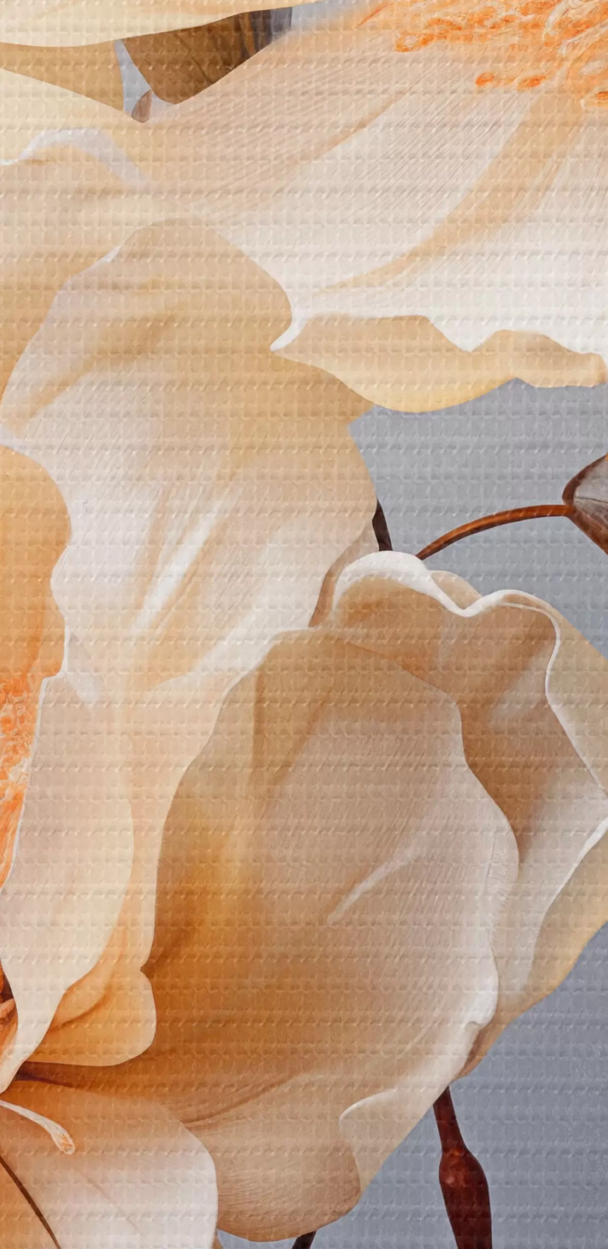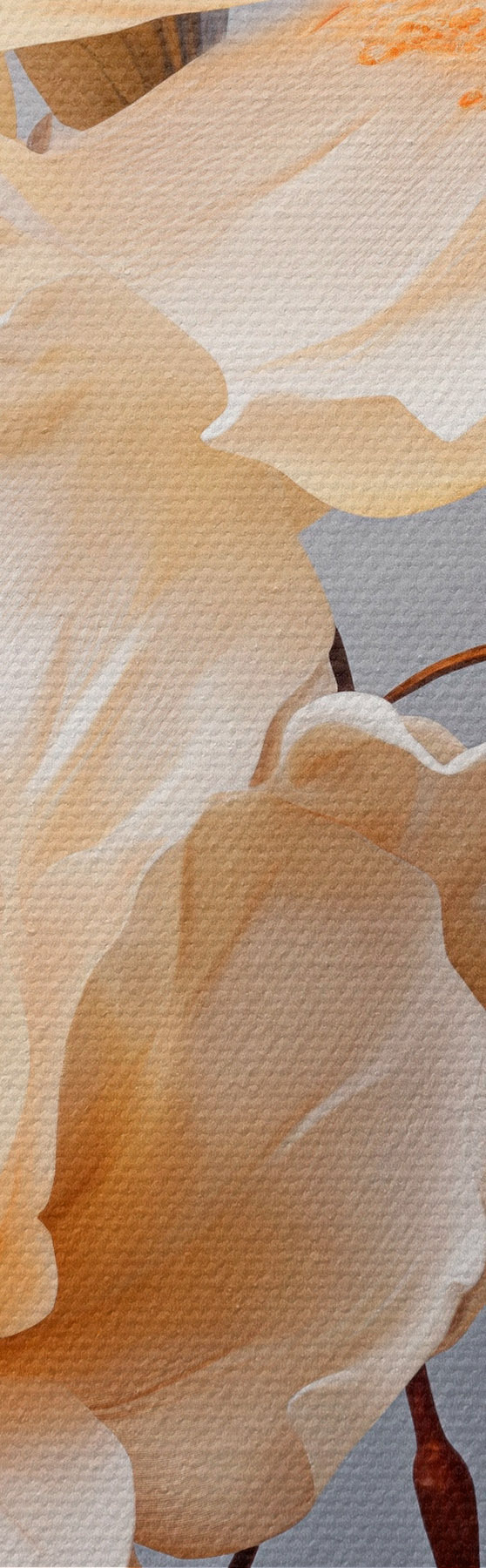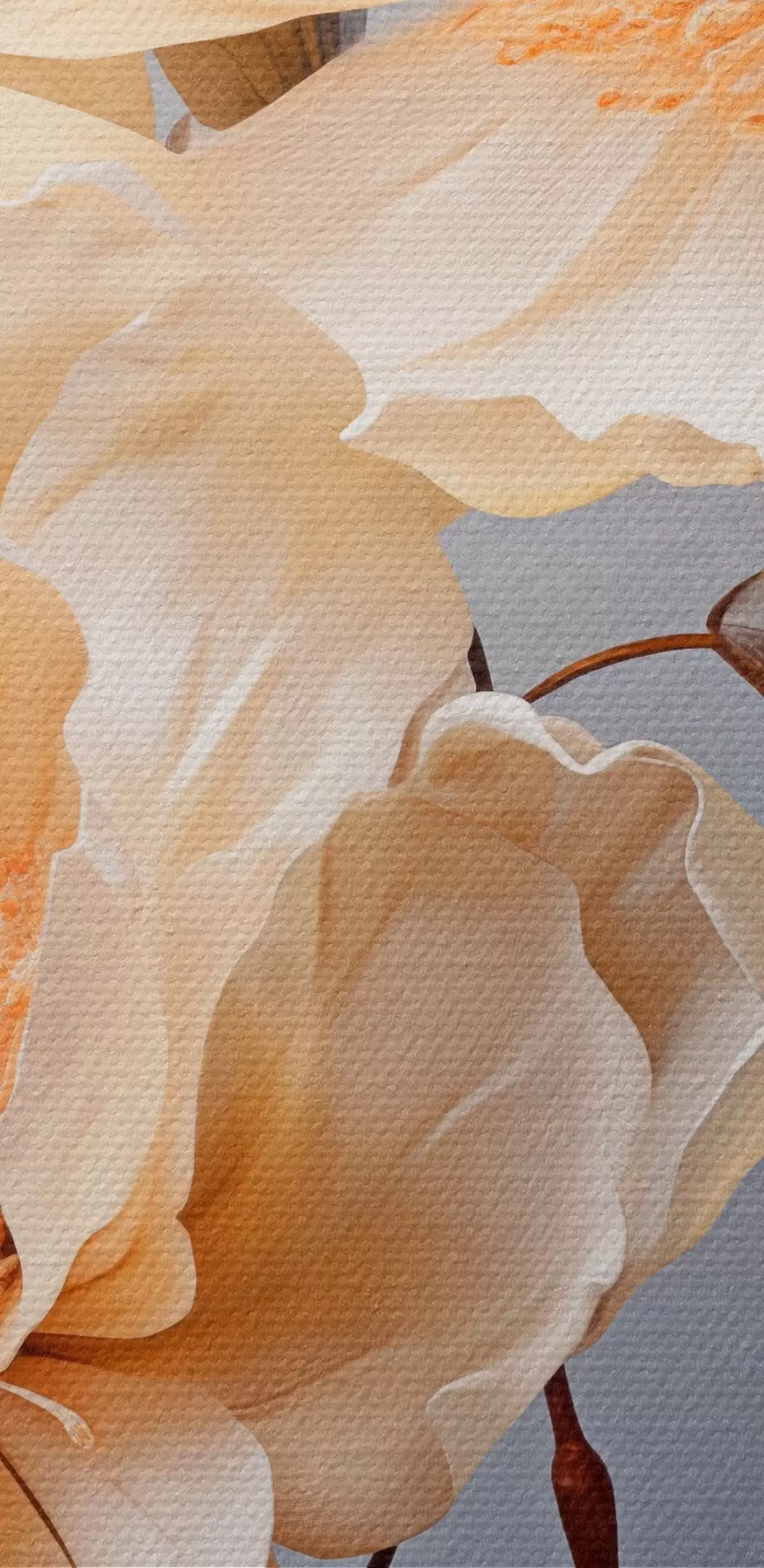 Tablouri Flori texturate cu pistil portocaliu și frunze portocalii pe fundal gri, lumină moale, elegant, detaliat, realist s45182