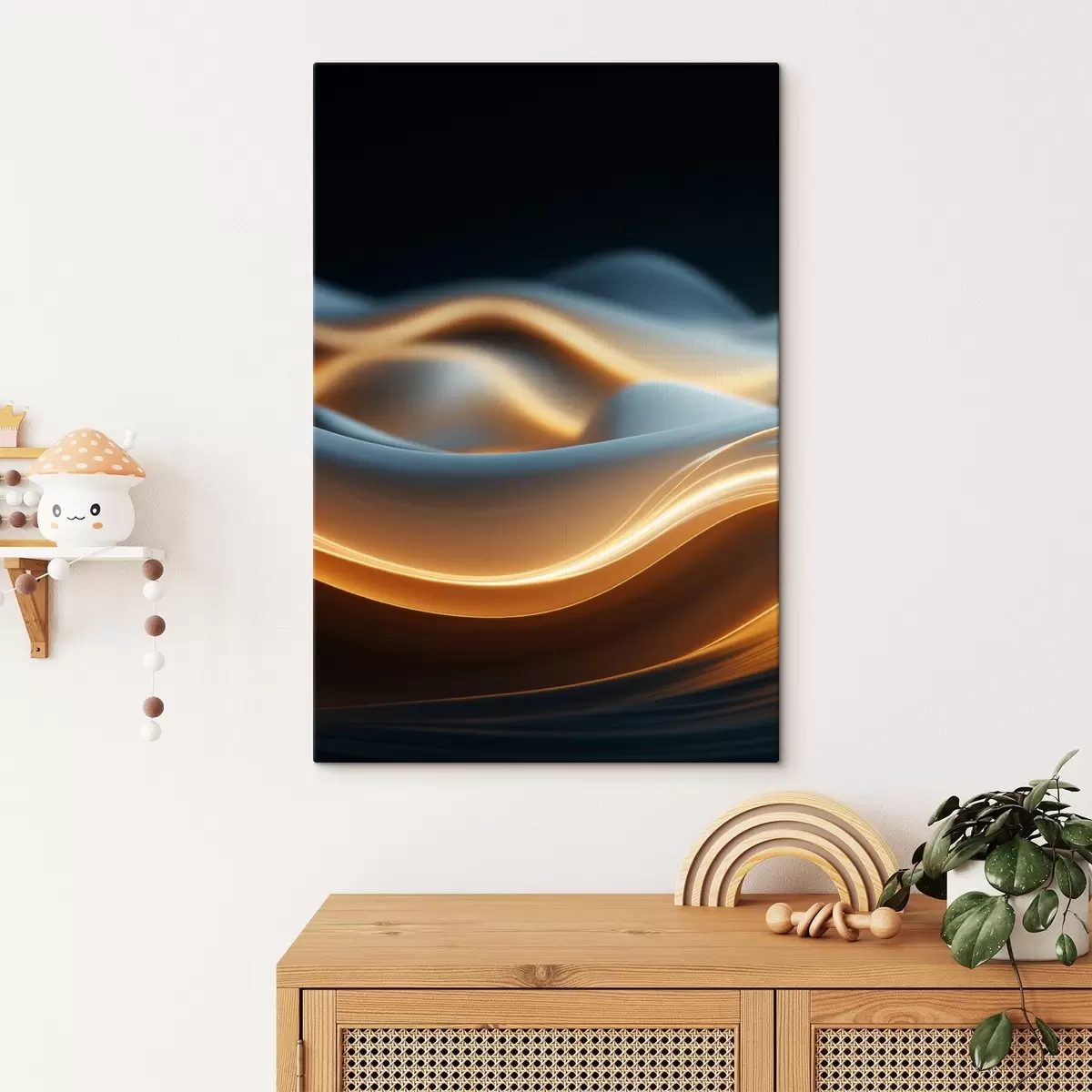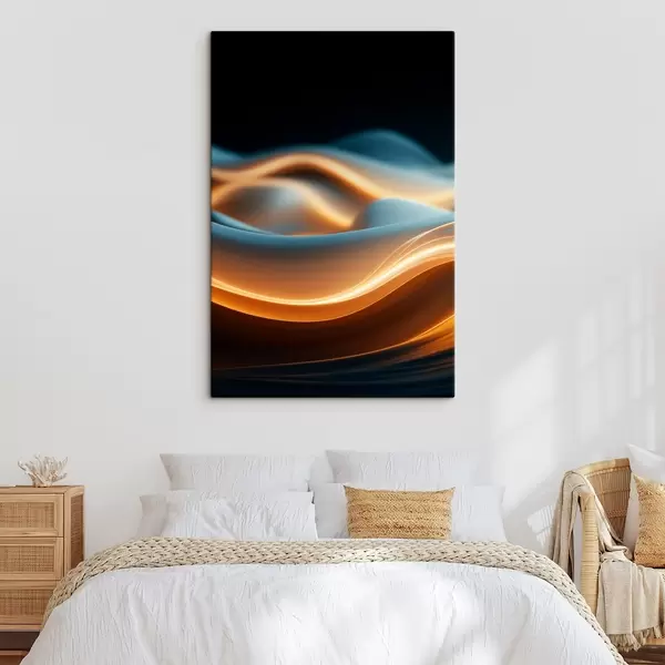 Tablouri Forme curgătoare abstracte cu linii portocalii, curbe și linii netede, compoziție dinamică, fundal întunecat s45184