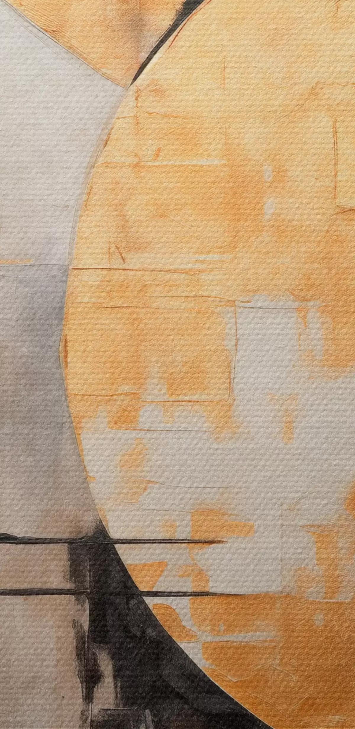 Pictură pe pânză Tablou abstract cu cercuri, linii negre și galbene și un fundal cu tonuri de gri și alb Nr s45185