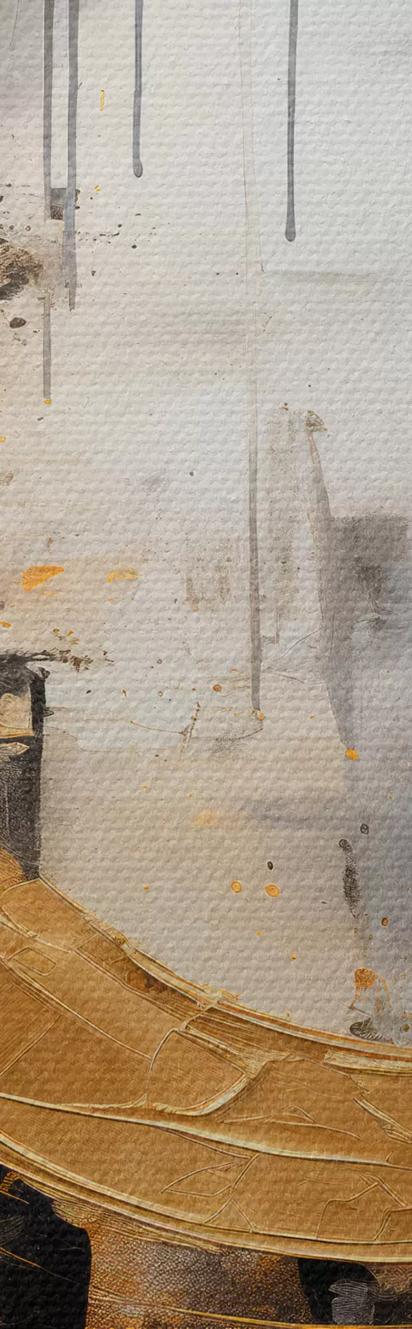 Tablouri Tablou abstract cu cercuri, linii negre și galbene și un fundal cu tonuri de gri și alb s45186