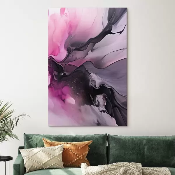 Tablouri Vârtejurile abstracte de roz, violet și negru se îmbină într-o compoziție fluidă, organică, creând un sentiment de mișcare s45196