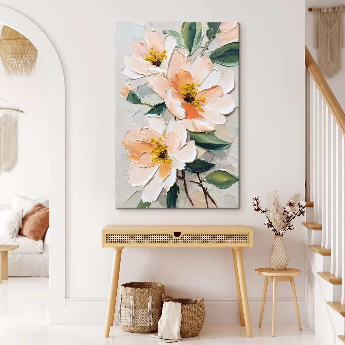 Pictură pe pânză Flori cu petale cu vârf alb și centru galben Nr s45262