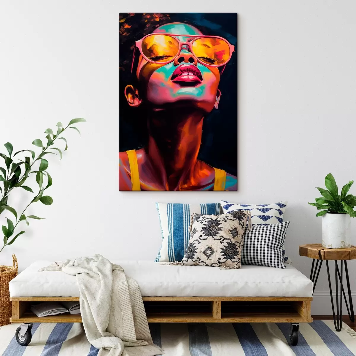 Pictură pe pânză Femeie care poartă ochelari galbeni Nr s45311