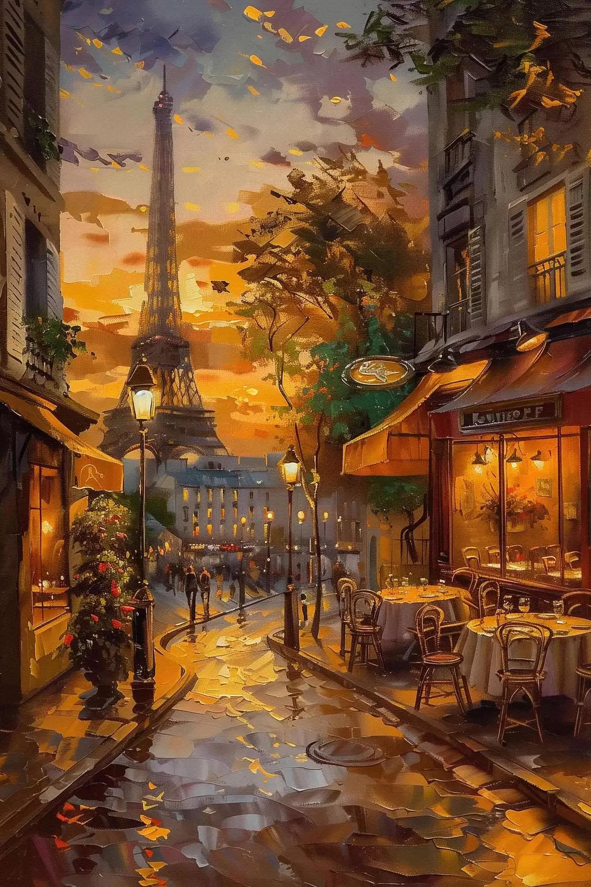Tablouri Stradă în Paris, pictură în ulei efect s45340
