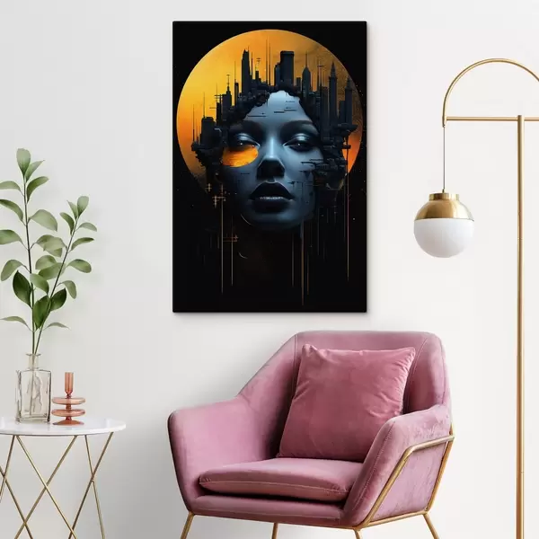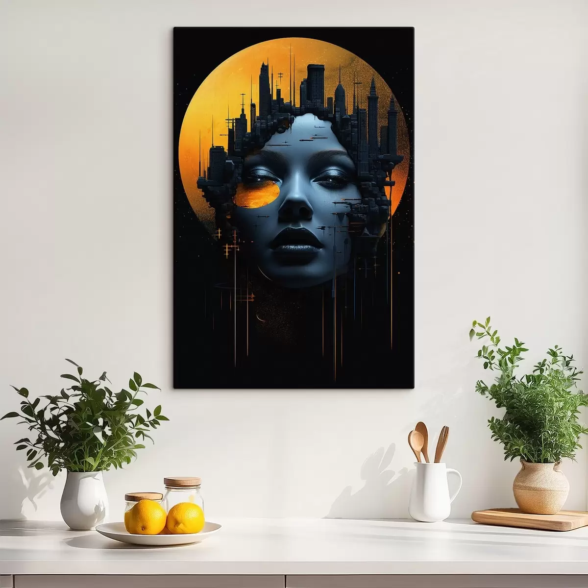Pictură pe pânză Oameni, fata fata lui pe un fundal de oraș, abstract Nr s45341