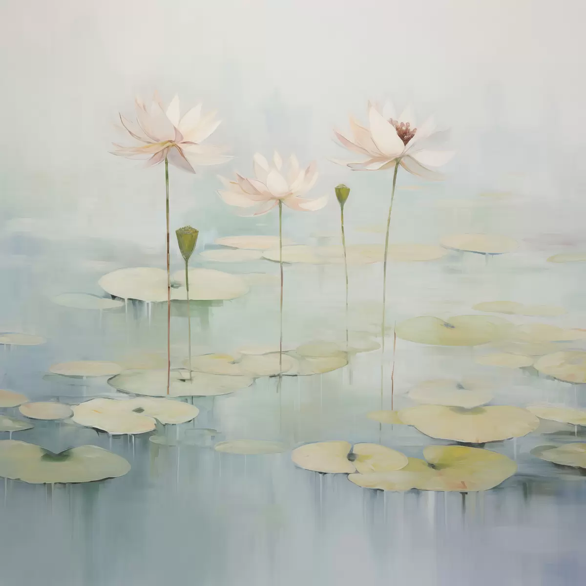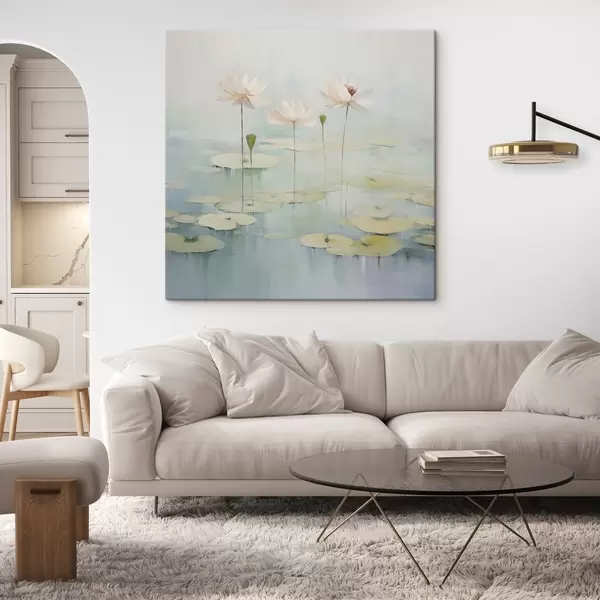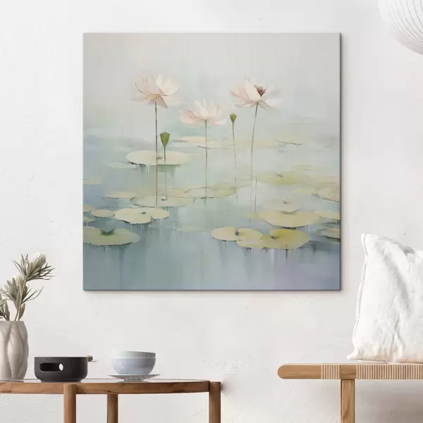 Pictură pe pânză Frunze și flori de lotus pe iaz Nr s45350