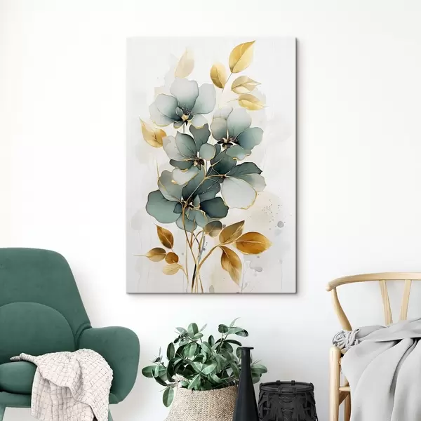 Pictură pe pânză Ramură abstractă cu flori și frunze Nr s45367
