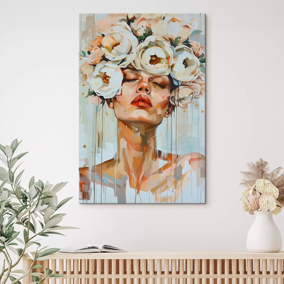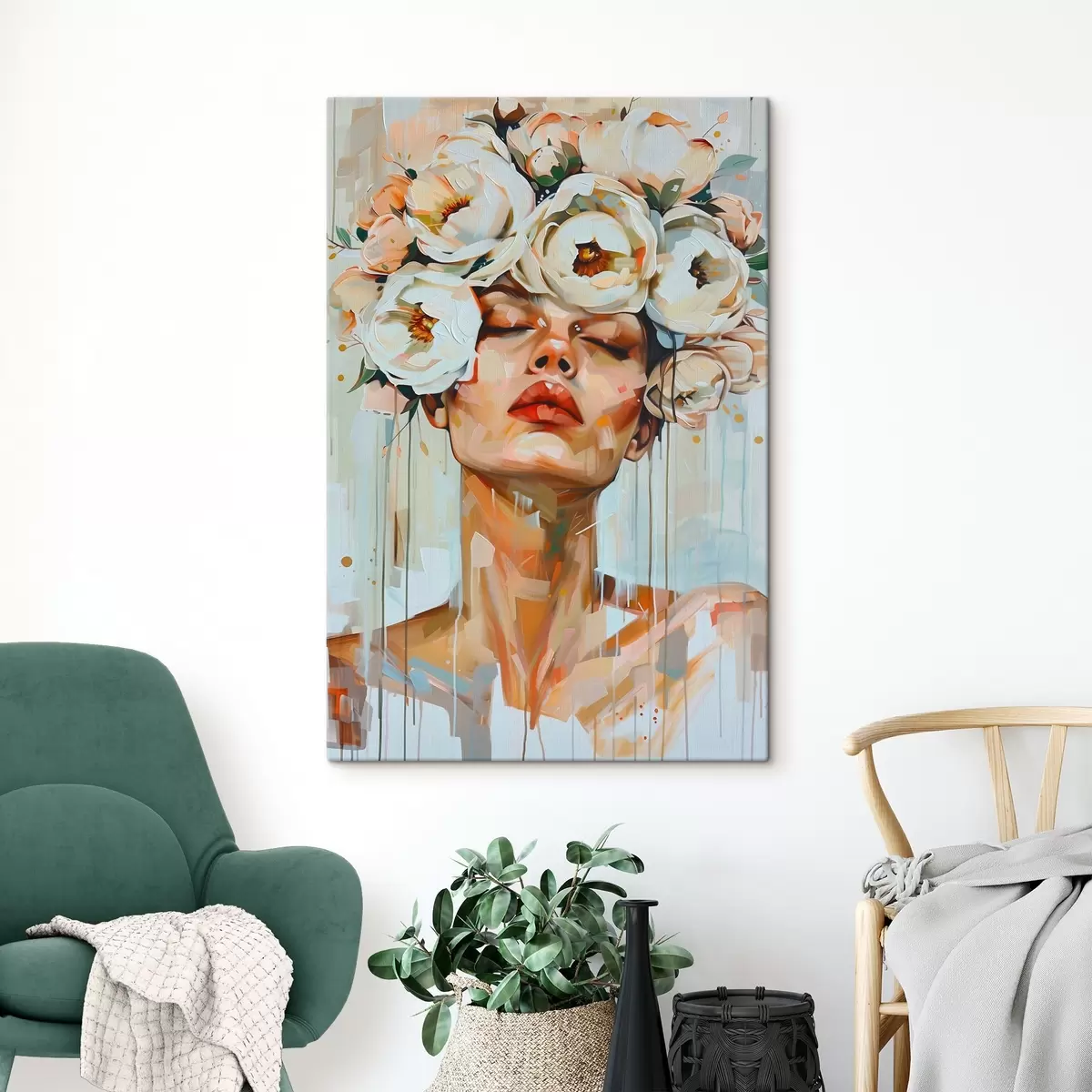 Pictură pe pânză Portret de femeie cu flori Nr s45370