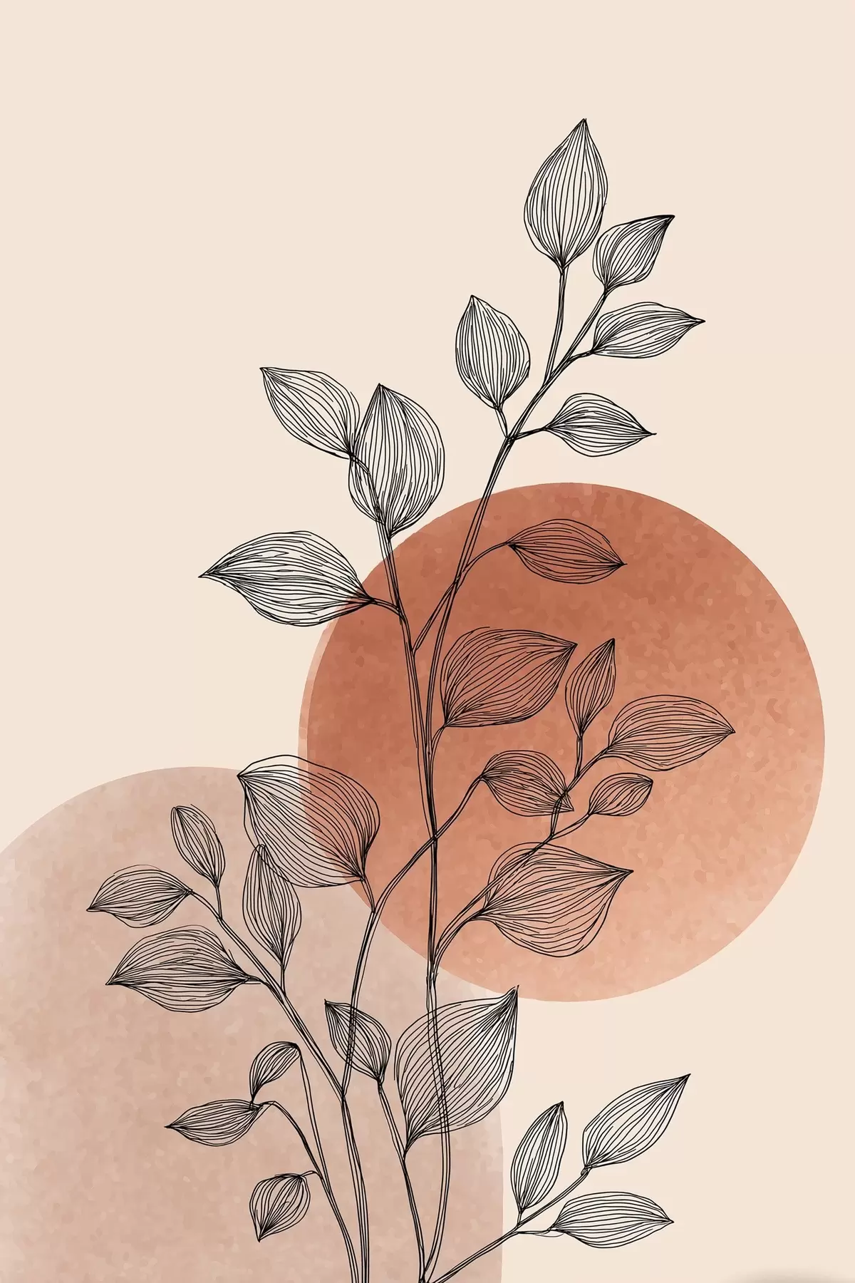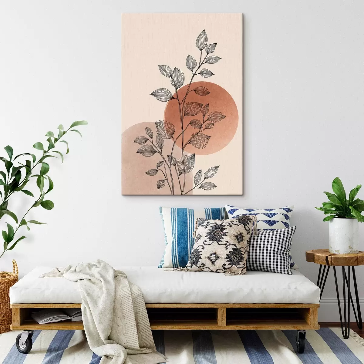 Pictură pe pânză Apus de soare și frunze Nr s45391