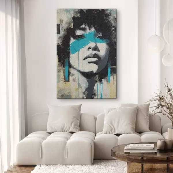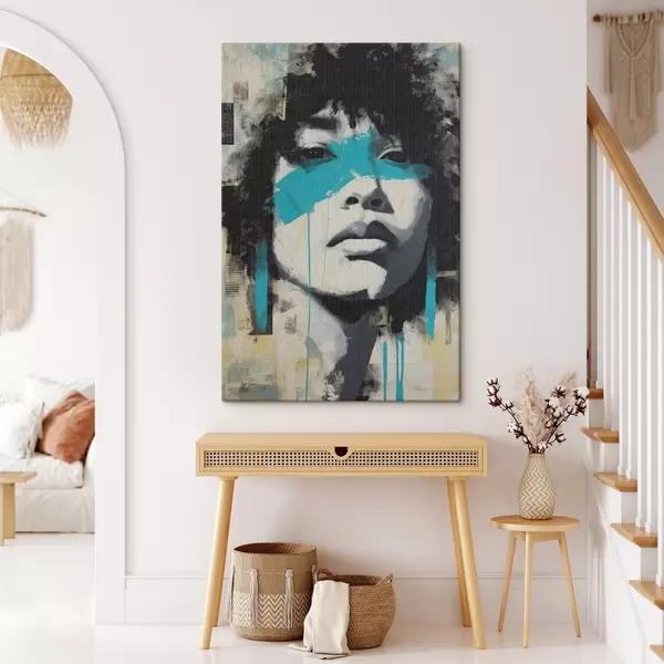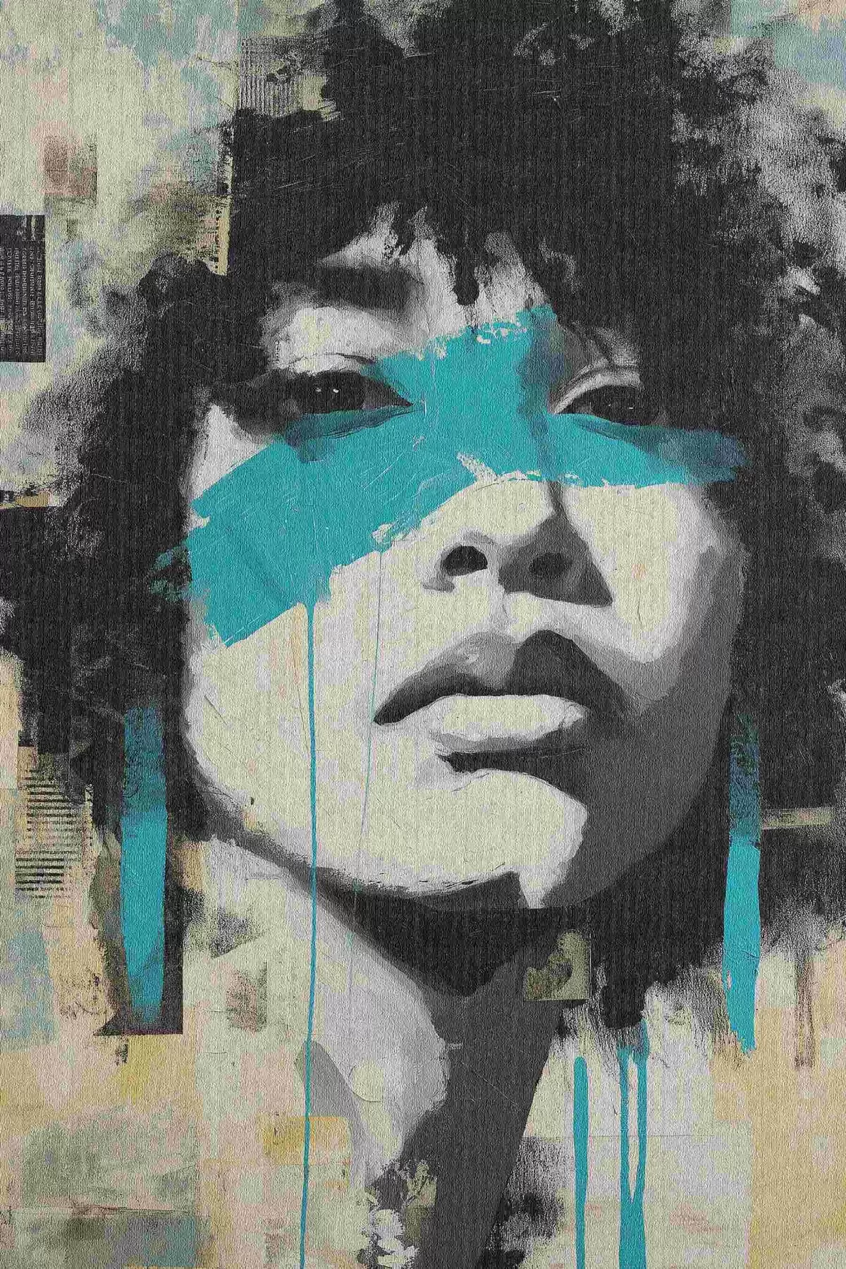 Pictură pe pânză Portret în media mixtă cu fragmente de culori și texturi Nr s45417