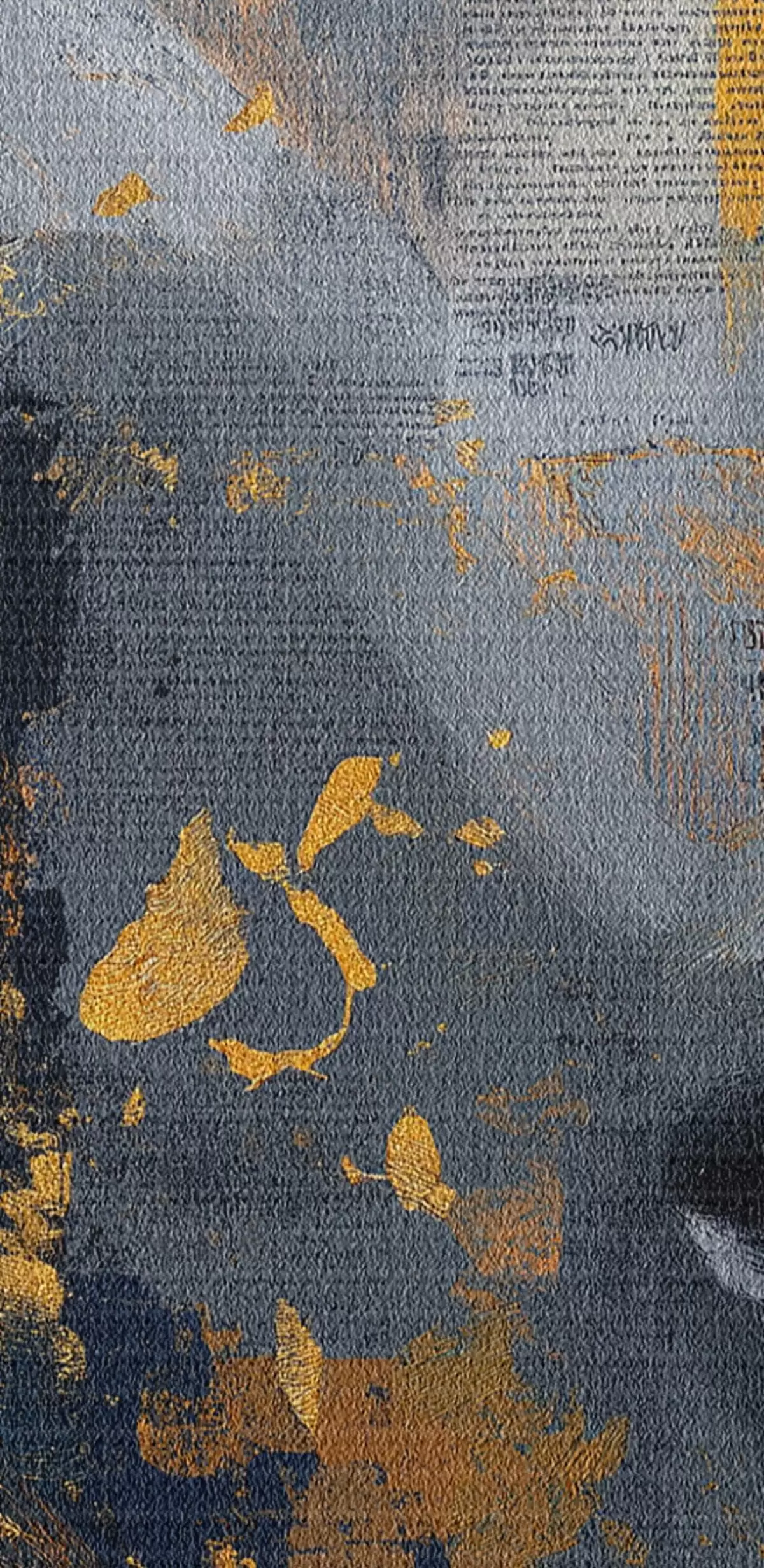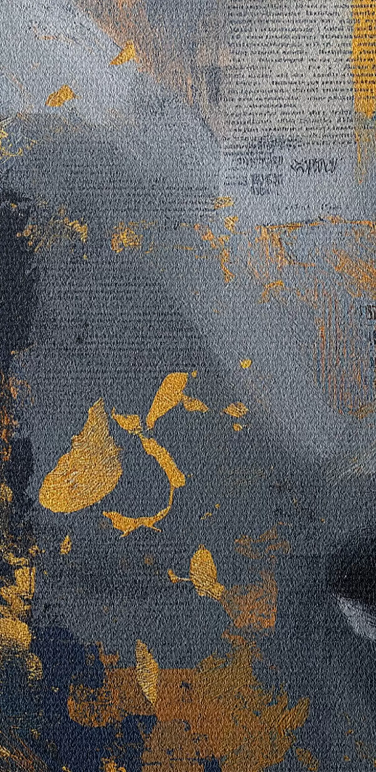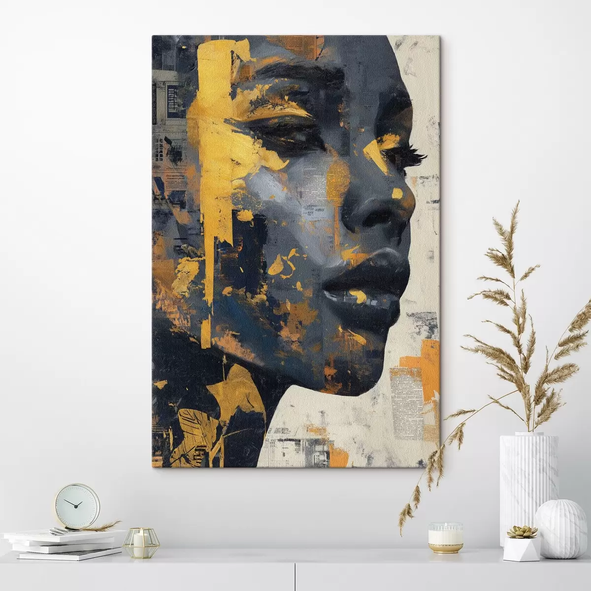 Pictură pe pânză Portret în media mixtă cu fragmente de ziar și tușe decorative Nr s45420