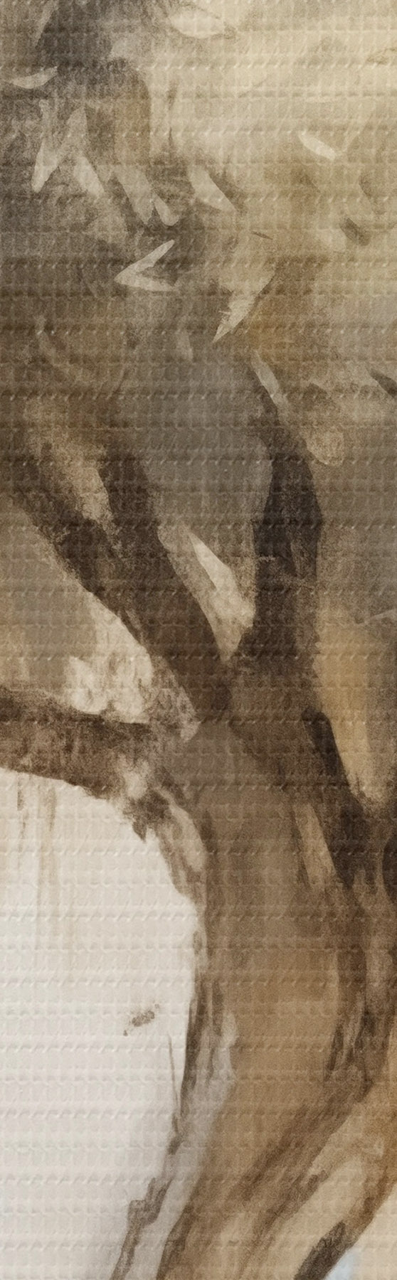 Țesătura fină a firelor de pe această pânză seamănă cu suprafața pânzelor artiștilor profesioniști.