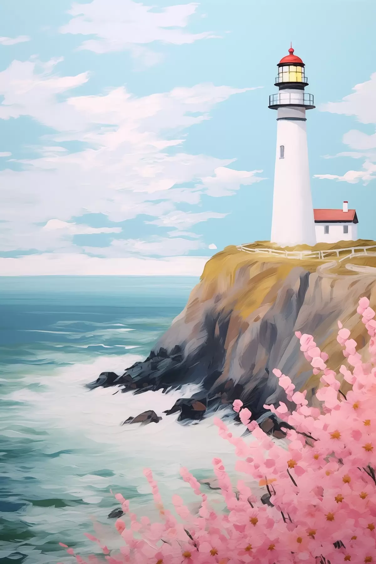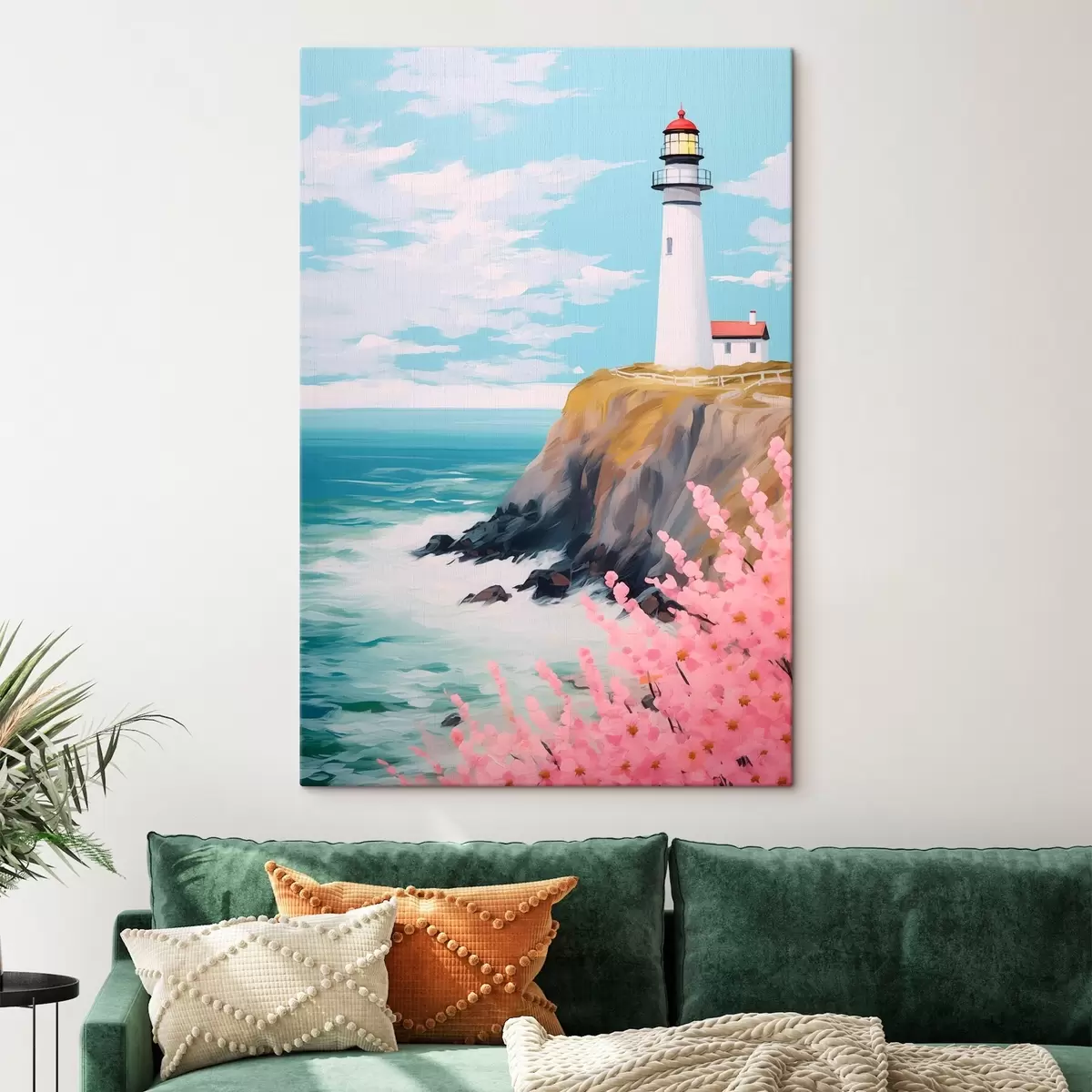 Pictură pe pânză Far pe o stâncă lângă mare Nr s45435