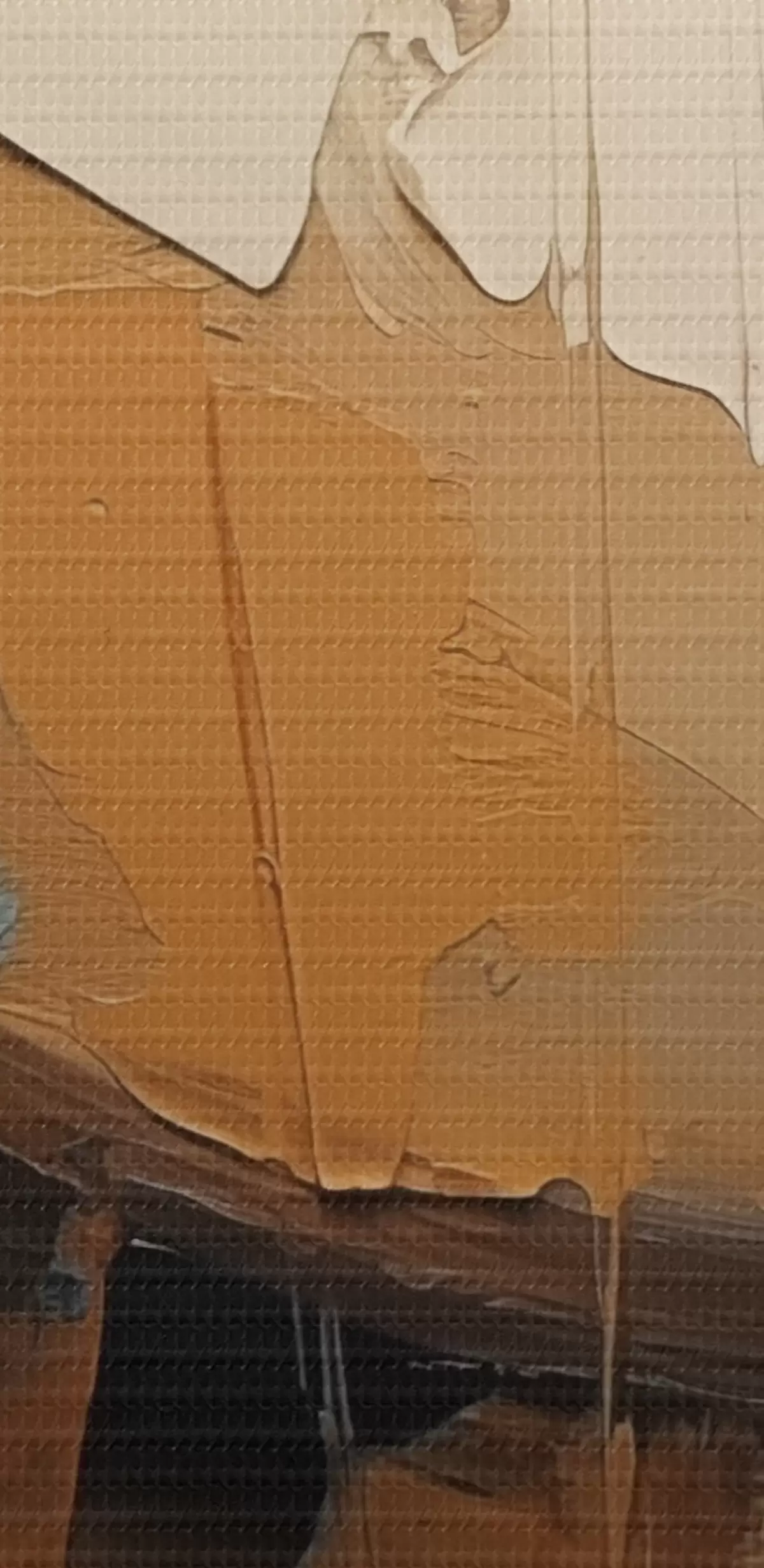 Țesătura fină a firelor de pe această pânză seamănă cu suprafața pânzelor artiștilor profesioniști.