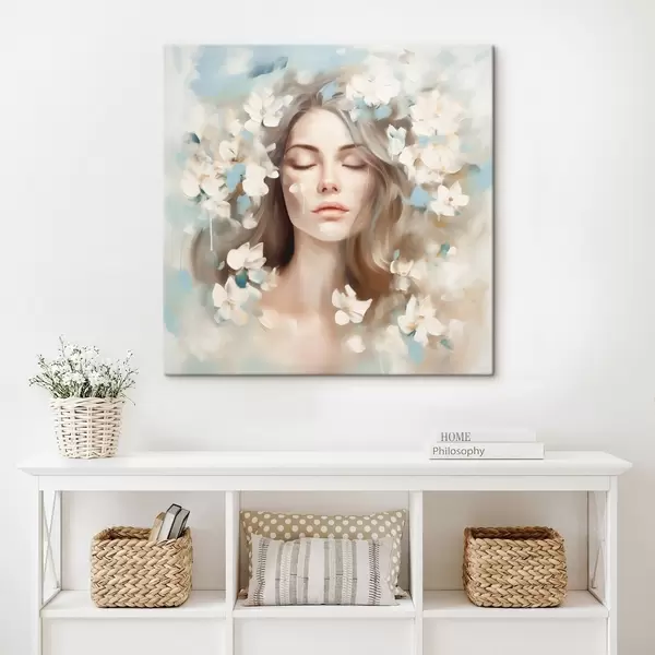 Pictură pe pânză Portret abstract al unei femei cu flori sub formă de tușe Nr s45450