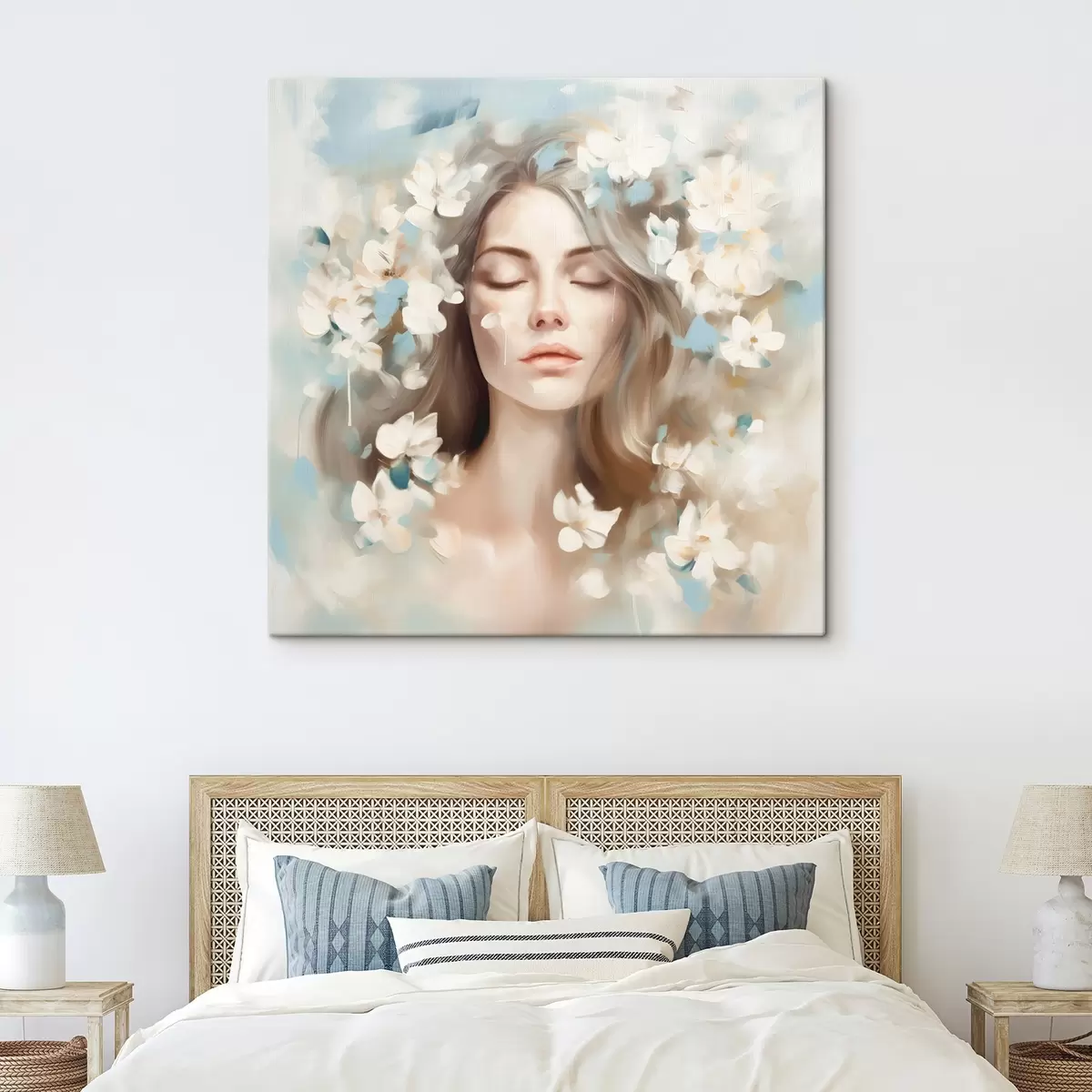 Pictură pe pânză Portret abstract al unei femei cu flori sub formă de tușe Nr s45450