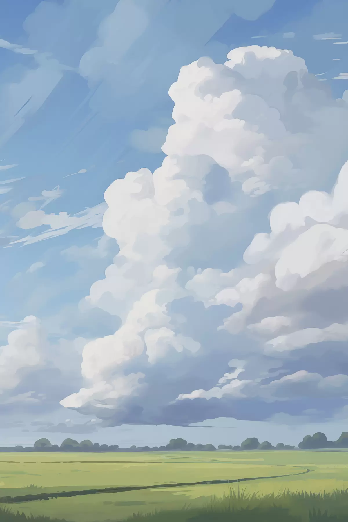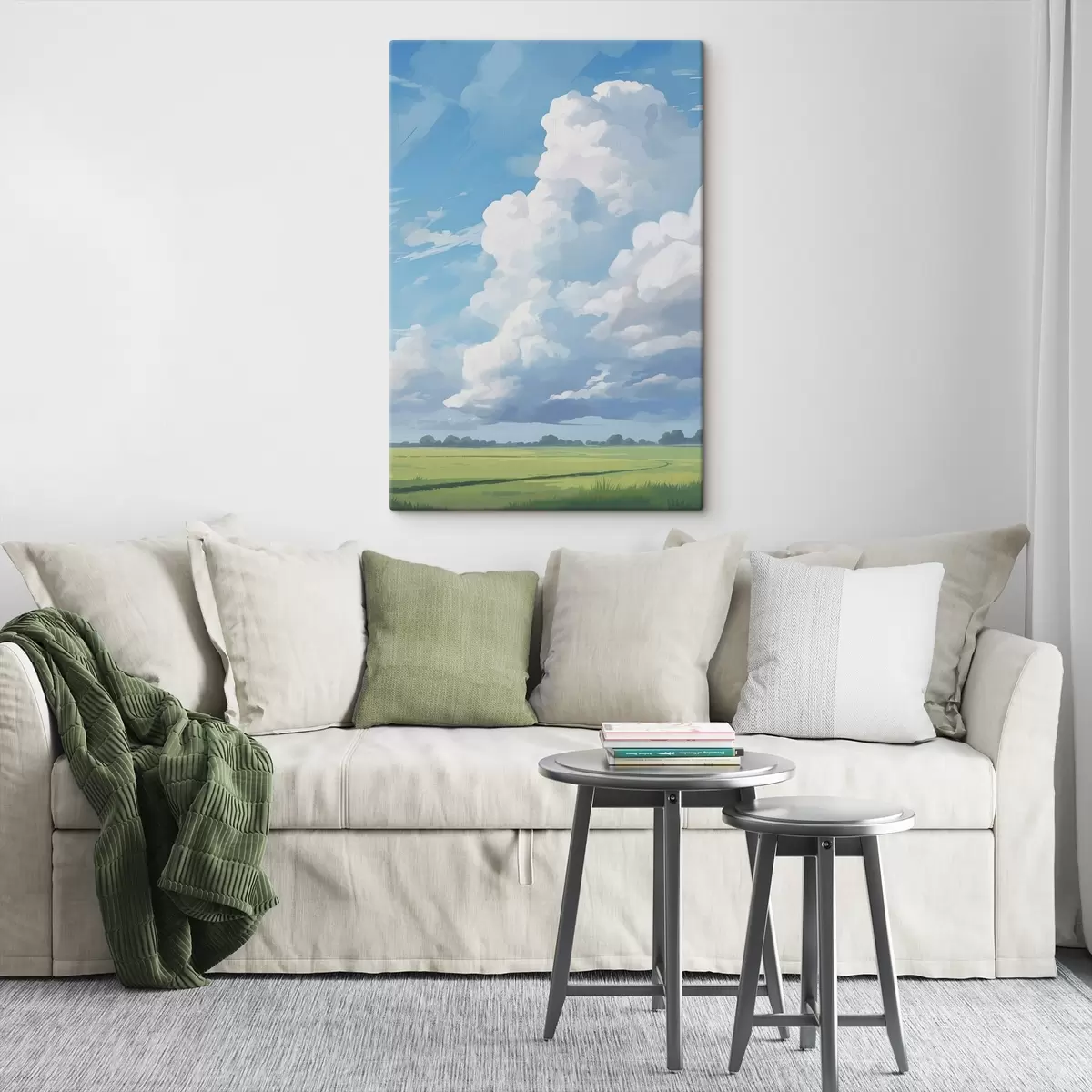 Pictură pe pânză Câmp împotriva cerului cu nori uriași Nr s45453